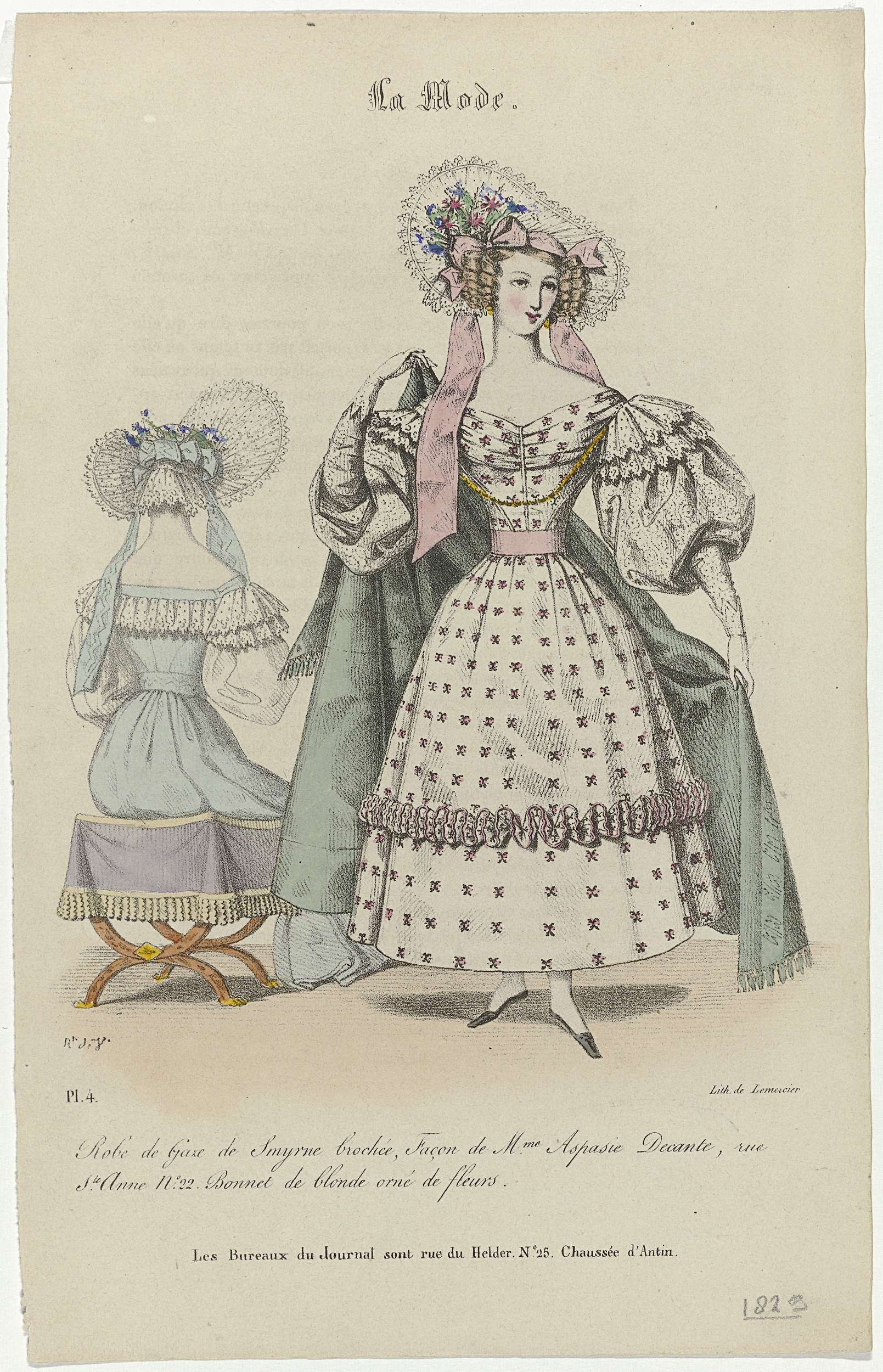 La Mode, 1829, Pl. 4 : Robe de Gaze de Smyrne broché...