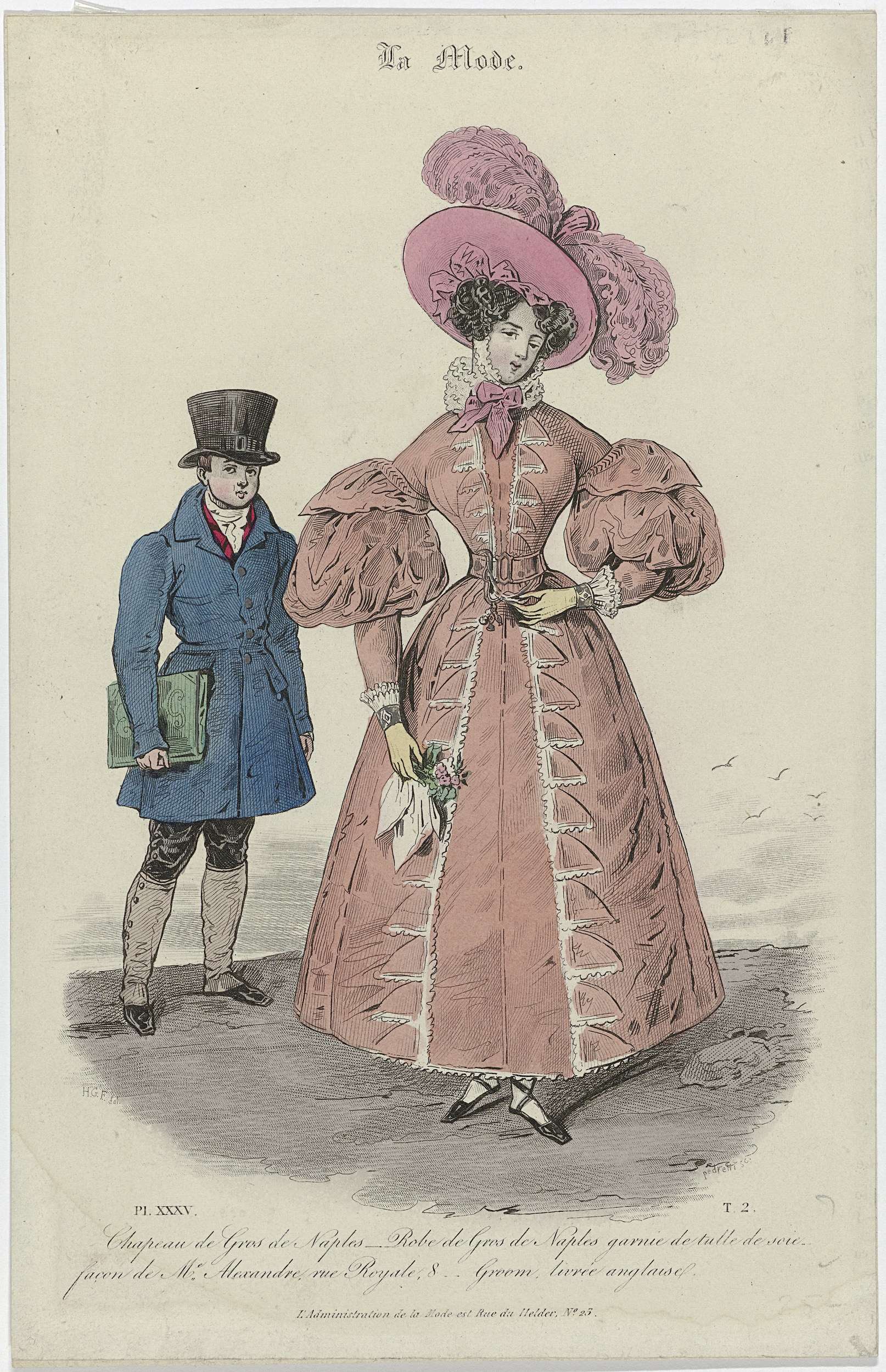 La Mode, 1830, Pl. 35, T.2: Chapeau de Gros de Naple...