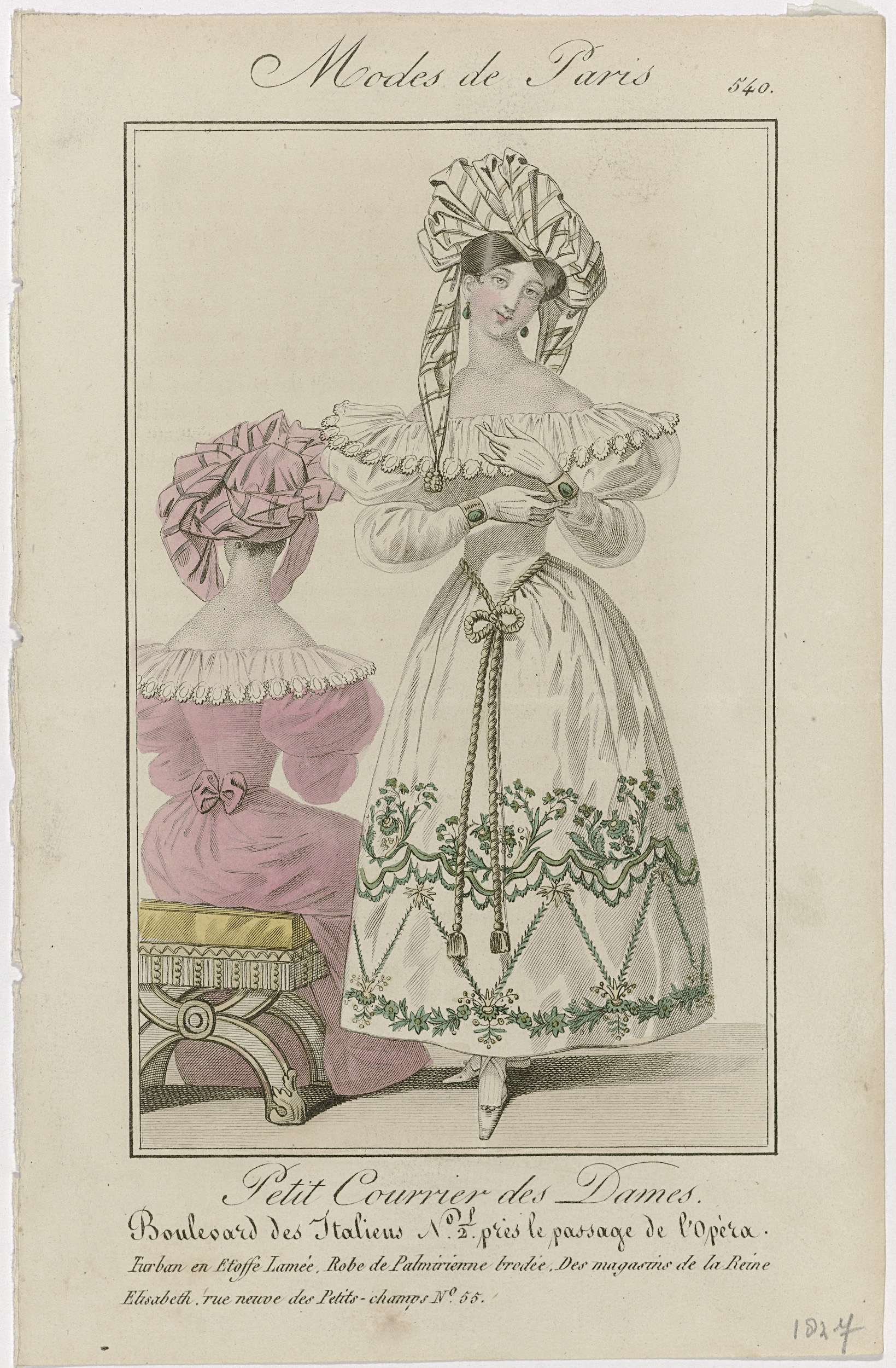 Petit Courrier des Dames, 1827, No. 540 : Turban en ...