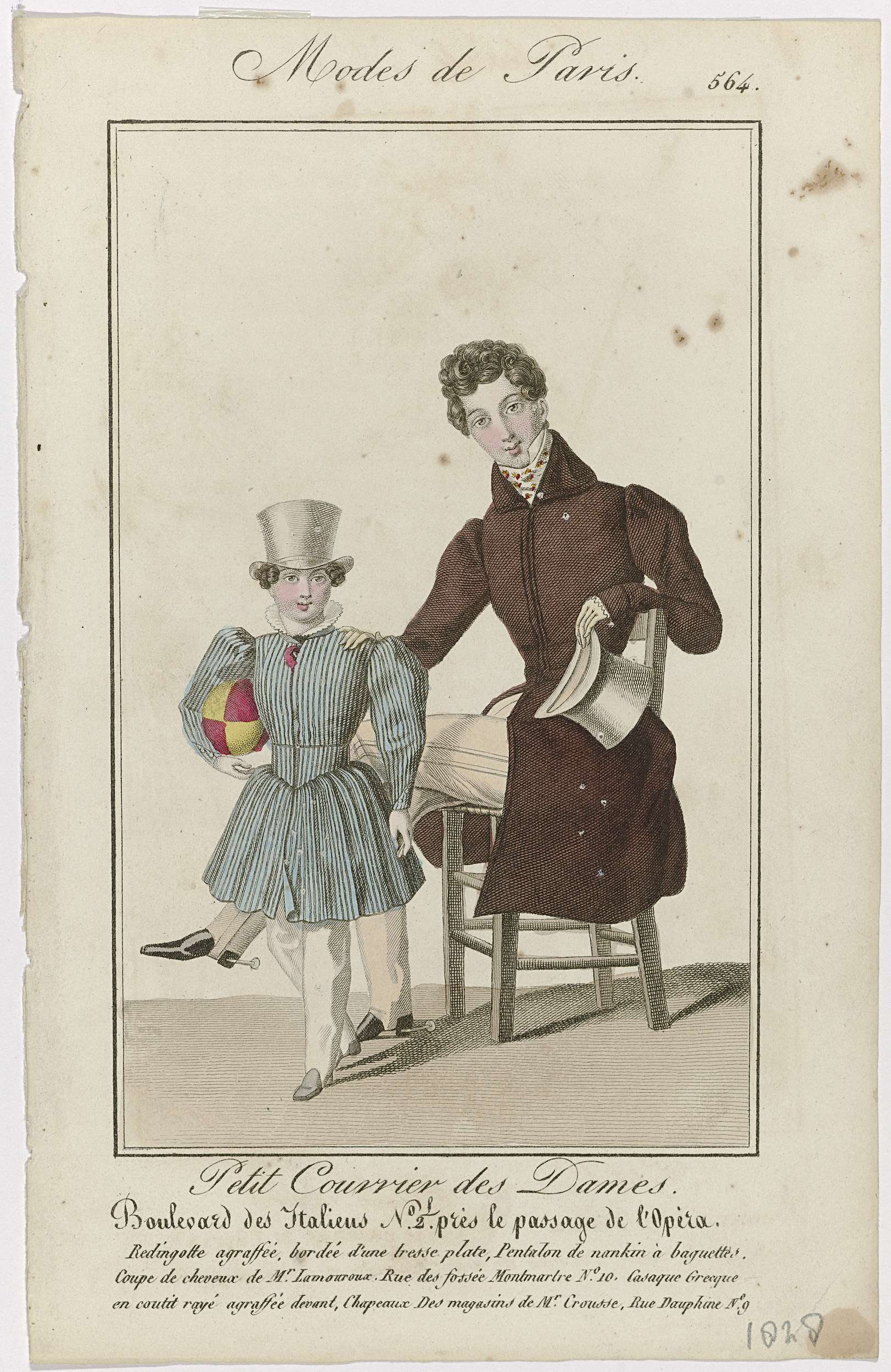 Petit Courrier des Dames, 1828, No. 564 : Redingotte...