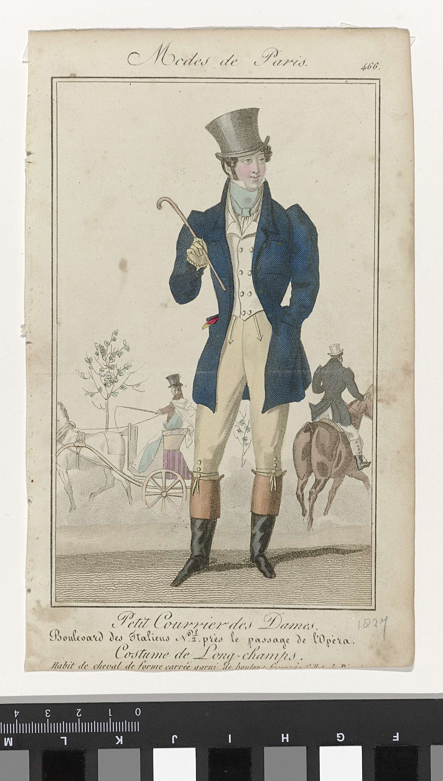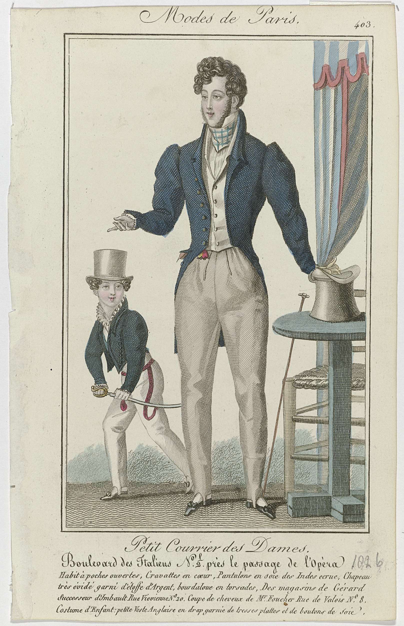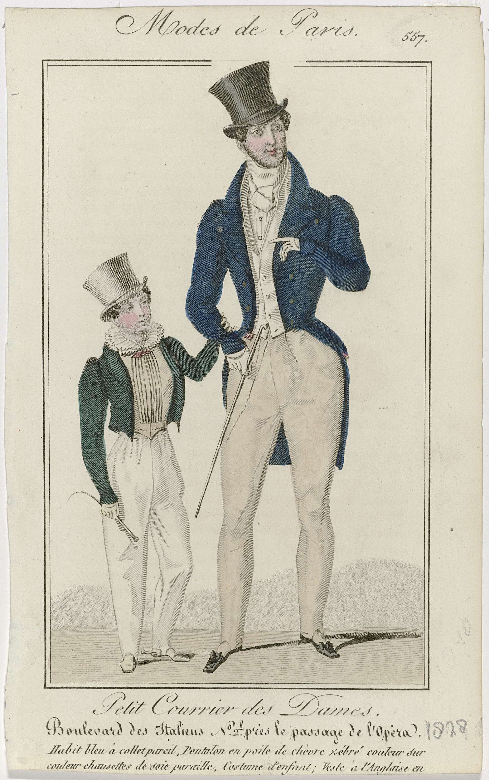 Petit Courrier des Dames, 1828, No. 557 : Habit bleu...