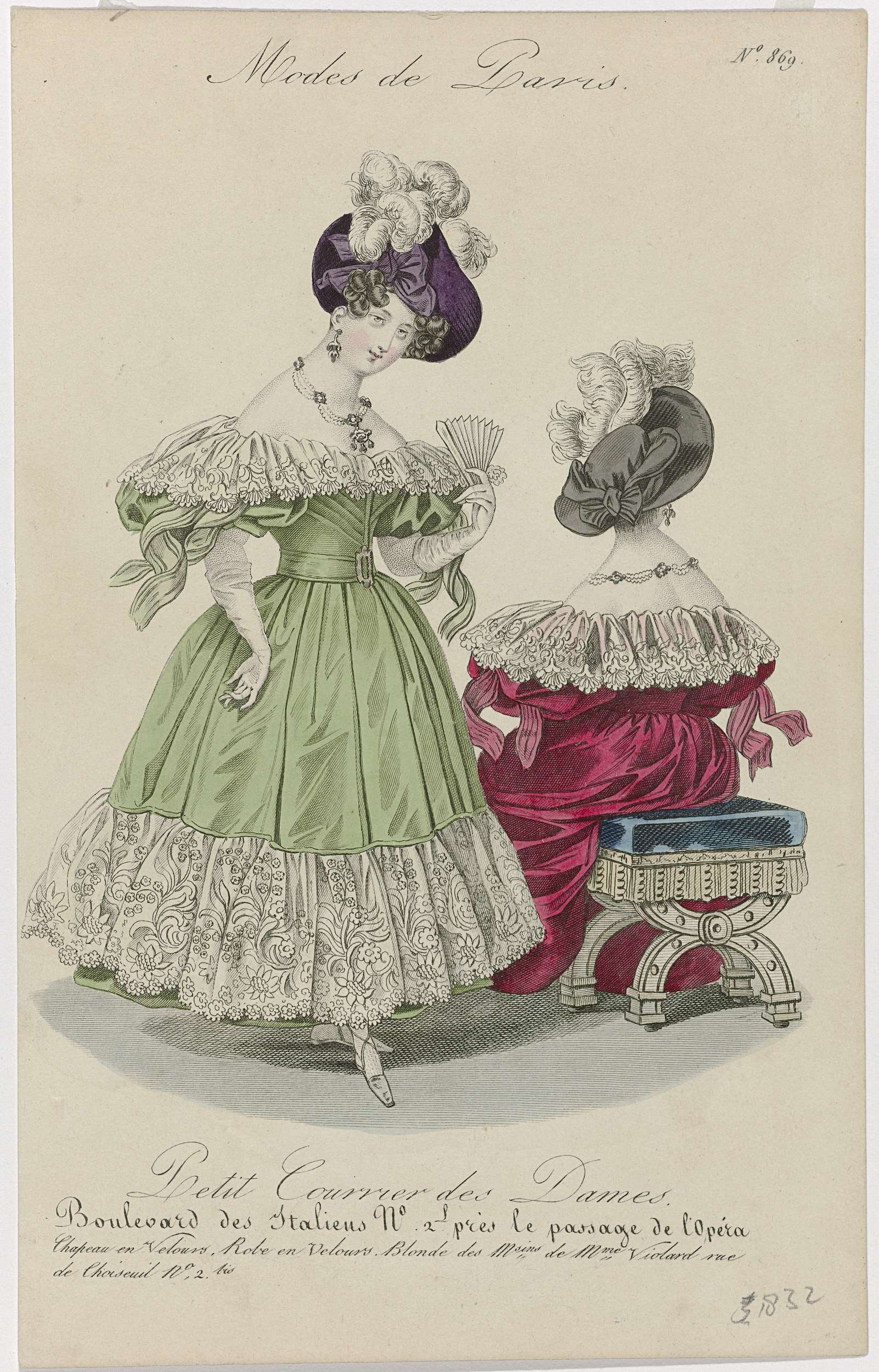 Petit Courrier des Dames, 1832, No. 869 : Chapeau en...