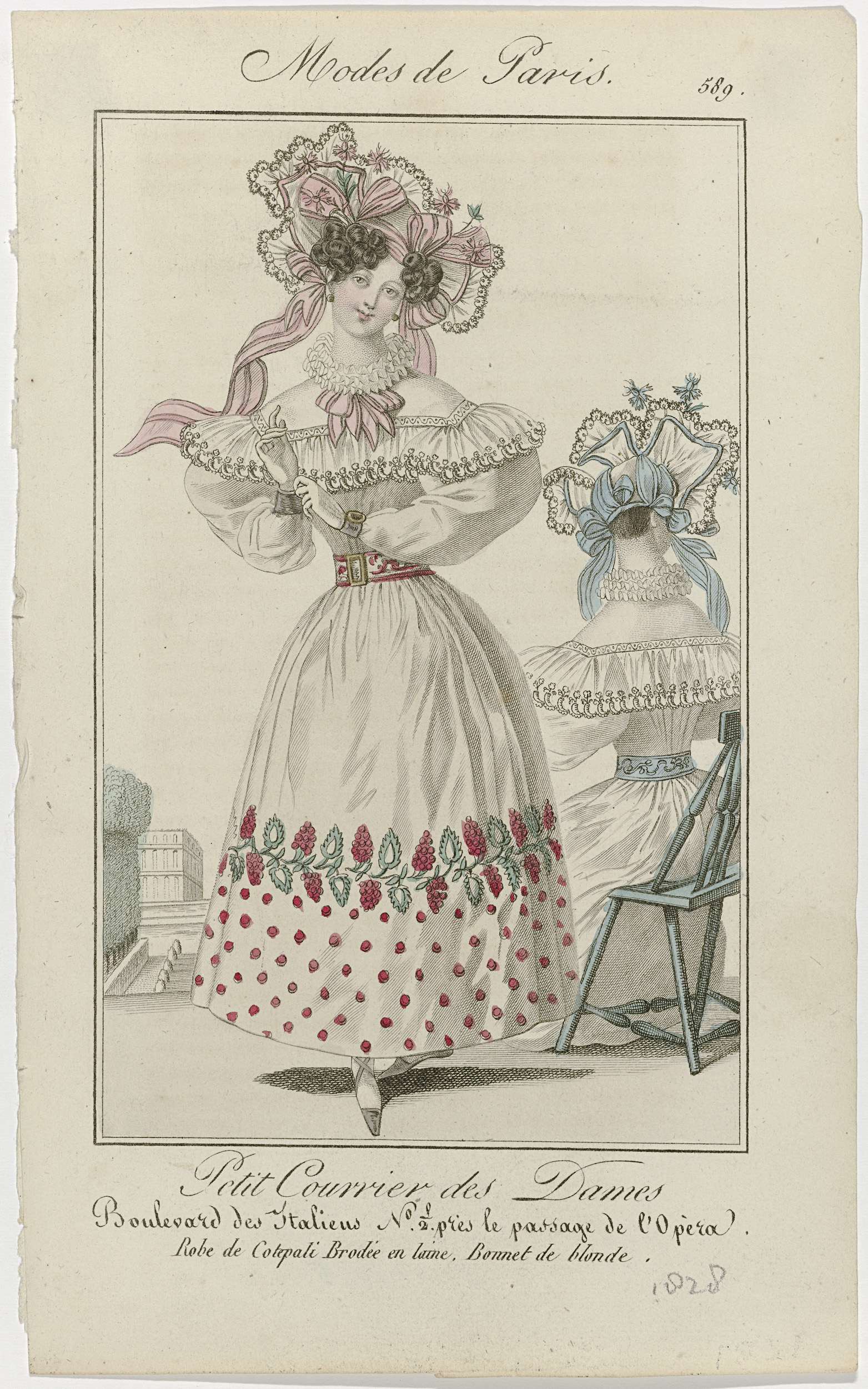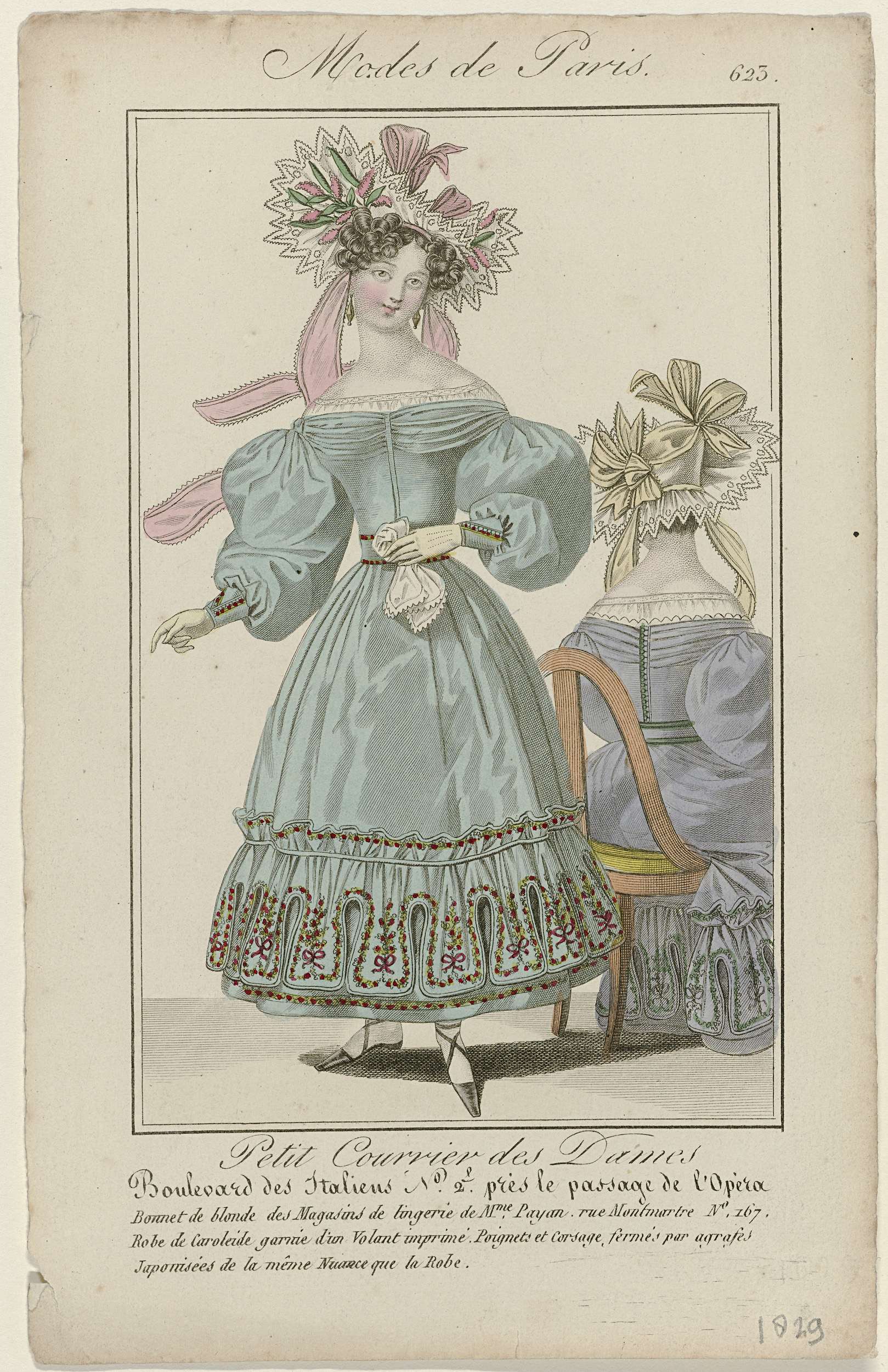 Petit Courrier des Dames, 1829, No. 623 : Bonnet de ...