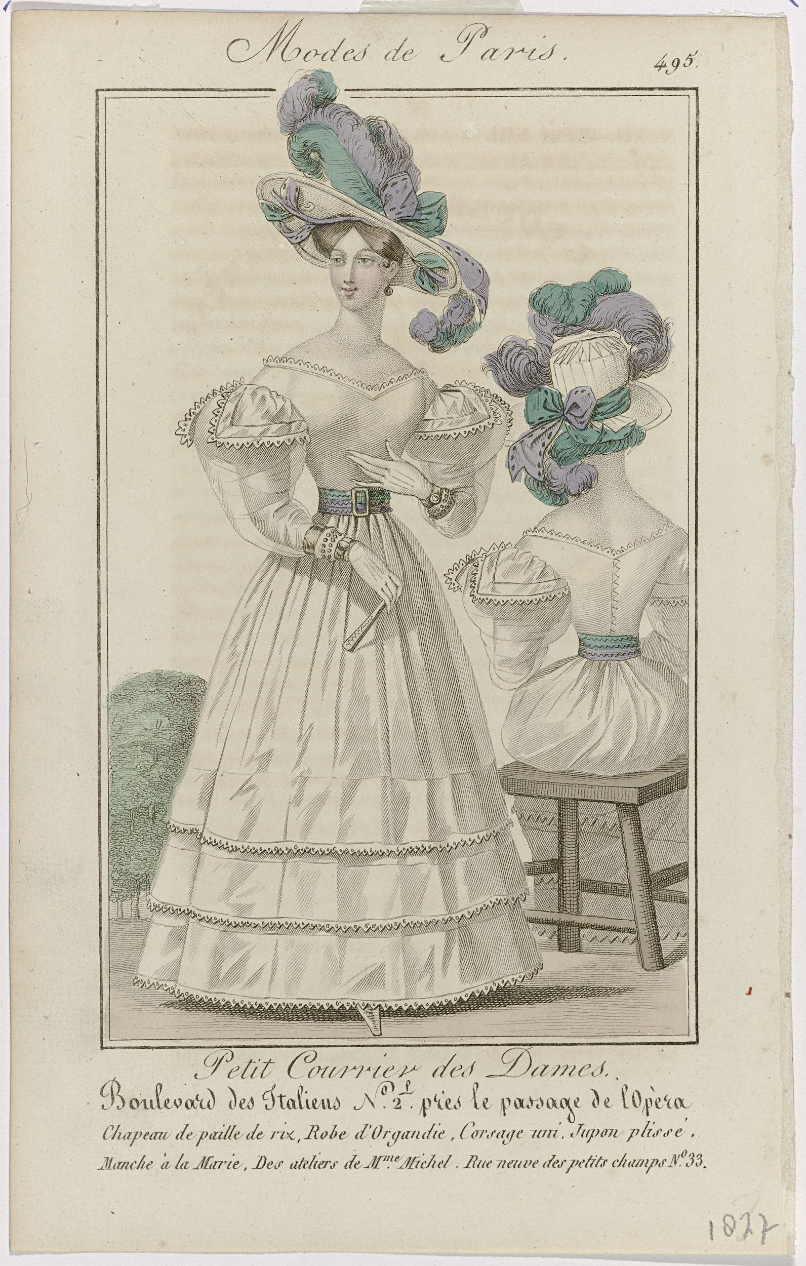 Petit Courrier des Dames, 1827, No. 495 : Chapeau de...