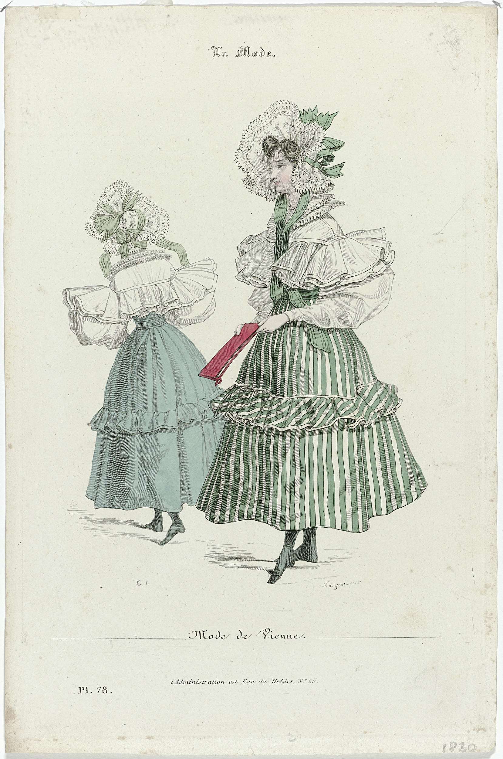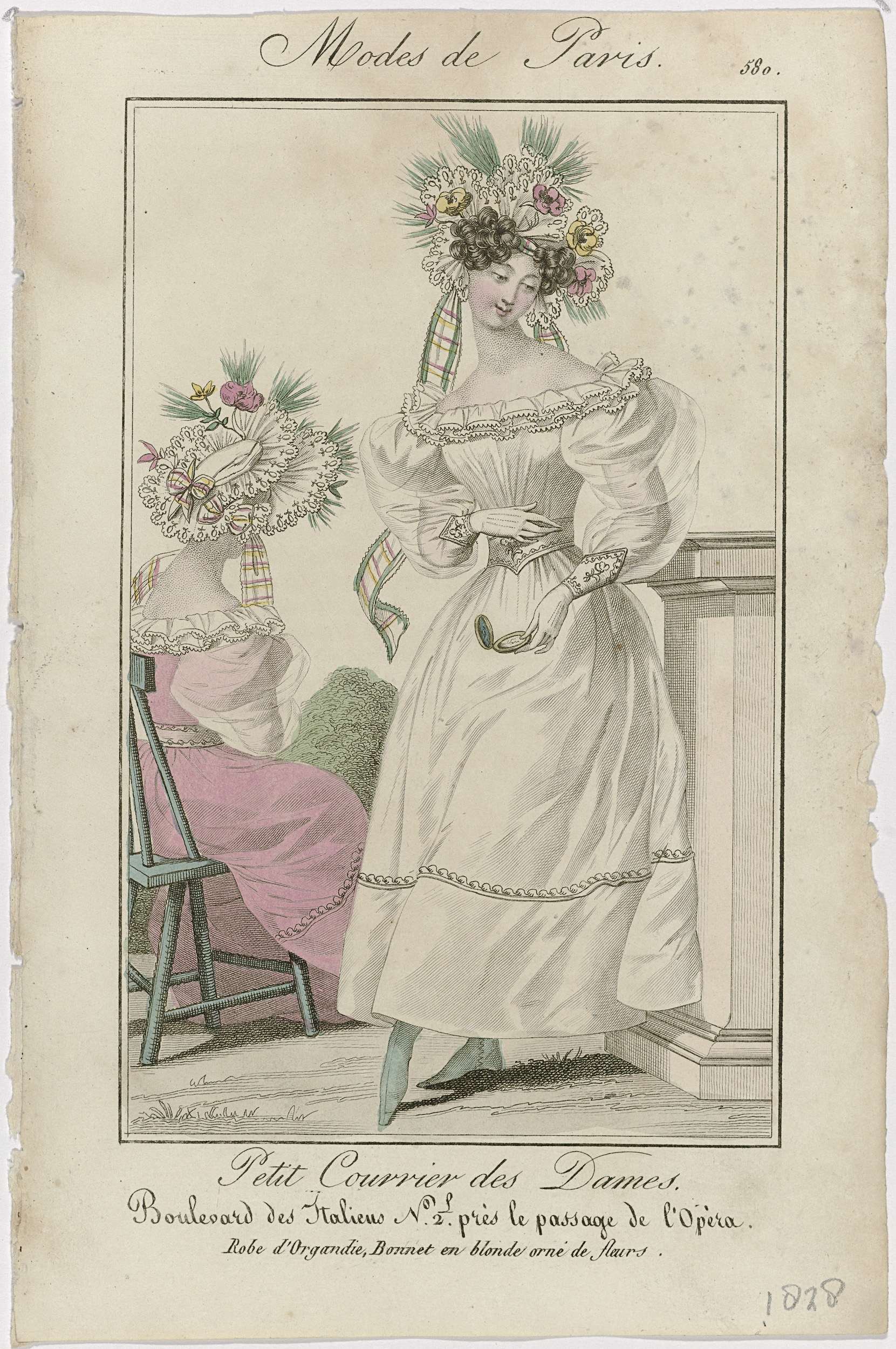Petit Courrier des Dames, 1828, No. 566 : Capote de ...