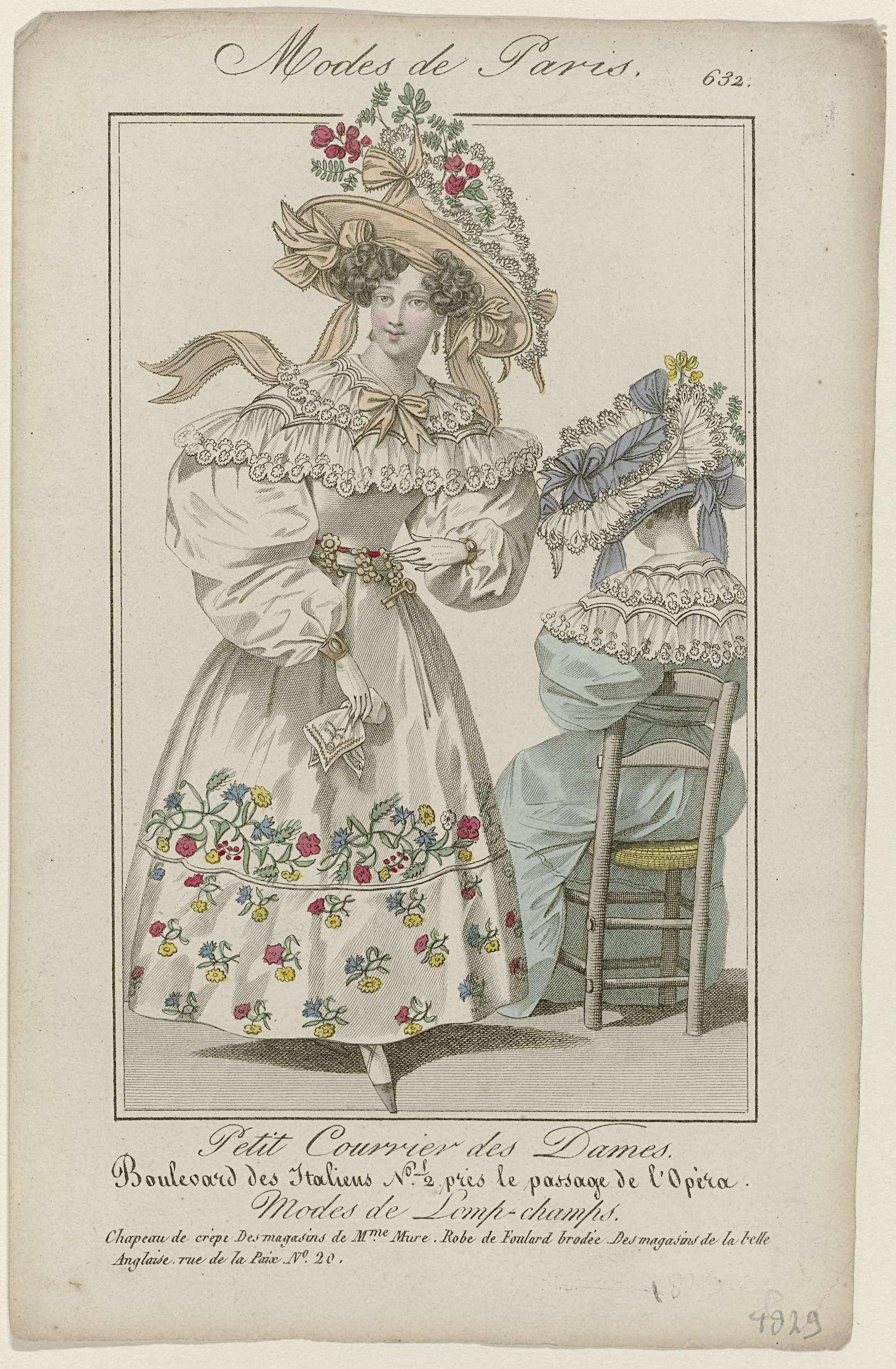 Petit Courrier des Dames, 1829, No. 632 : Chapeau de...