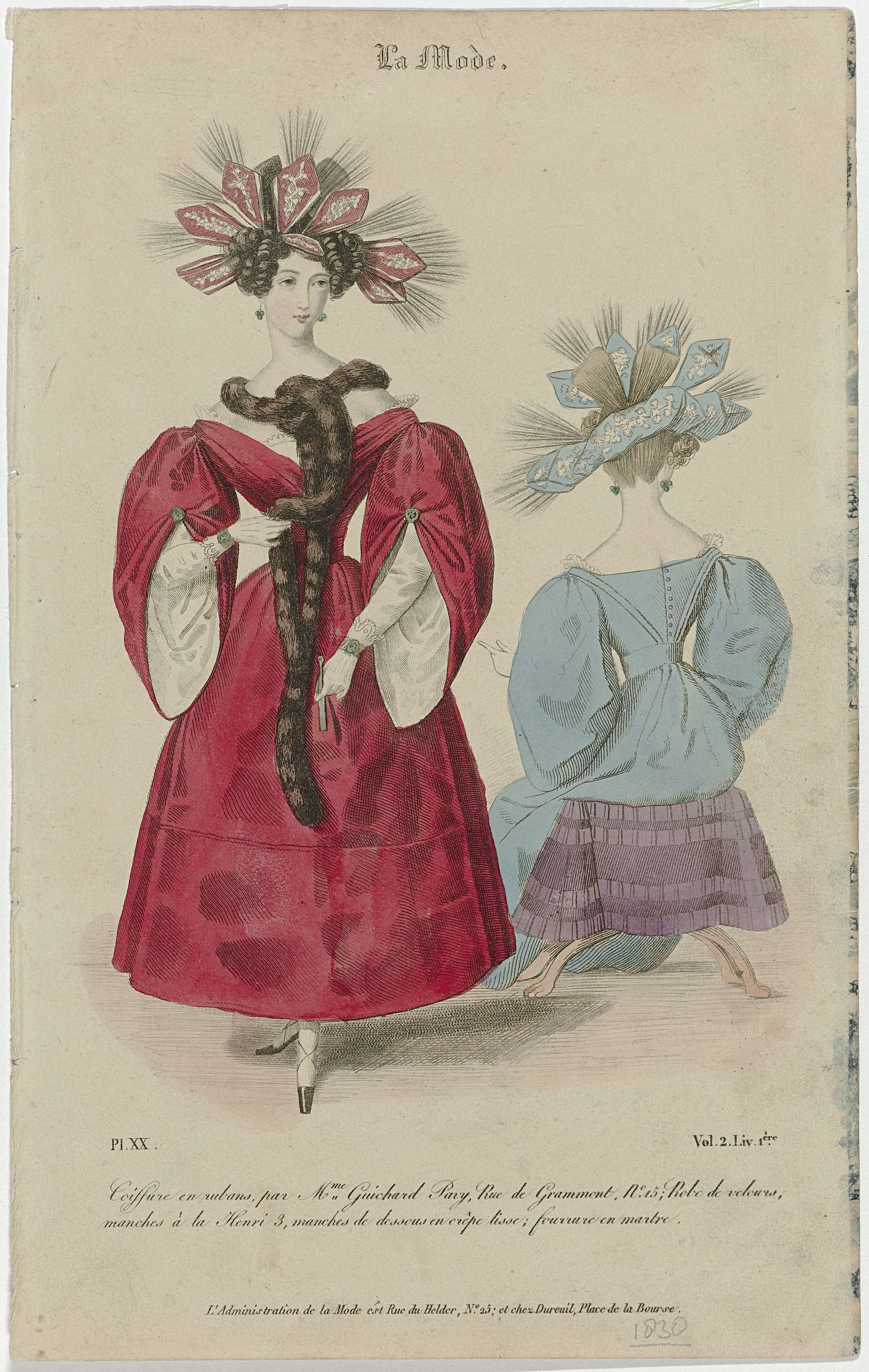 La Mode, 1830, Vol. 2 Liv. 1.ere, Pl. 20 : Coeffure ...