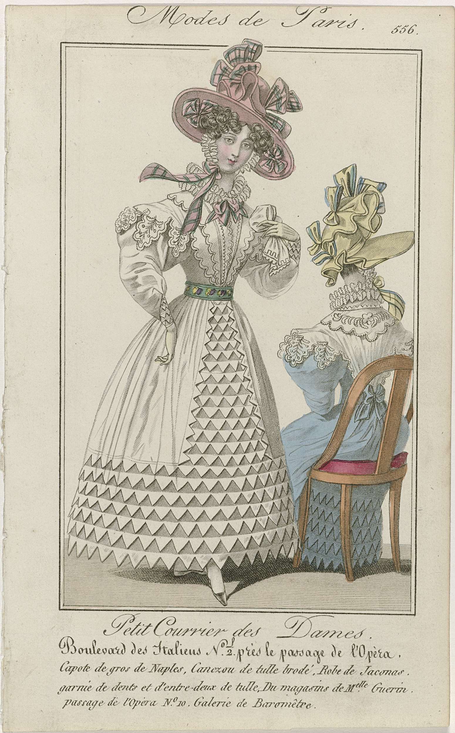 Petit Courrier des Dames, 1828, No. 556 : Capote de ...