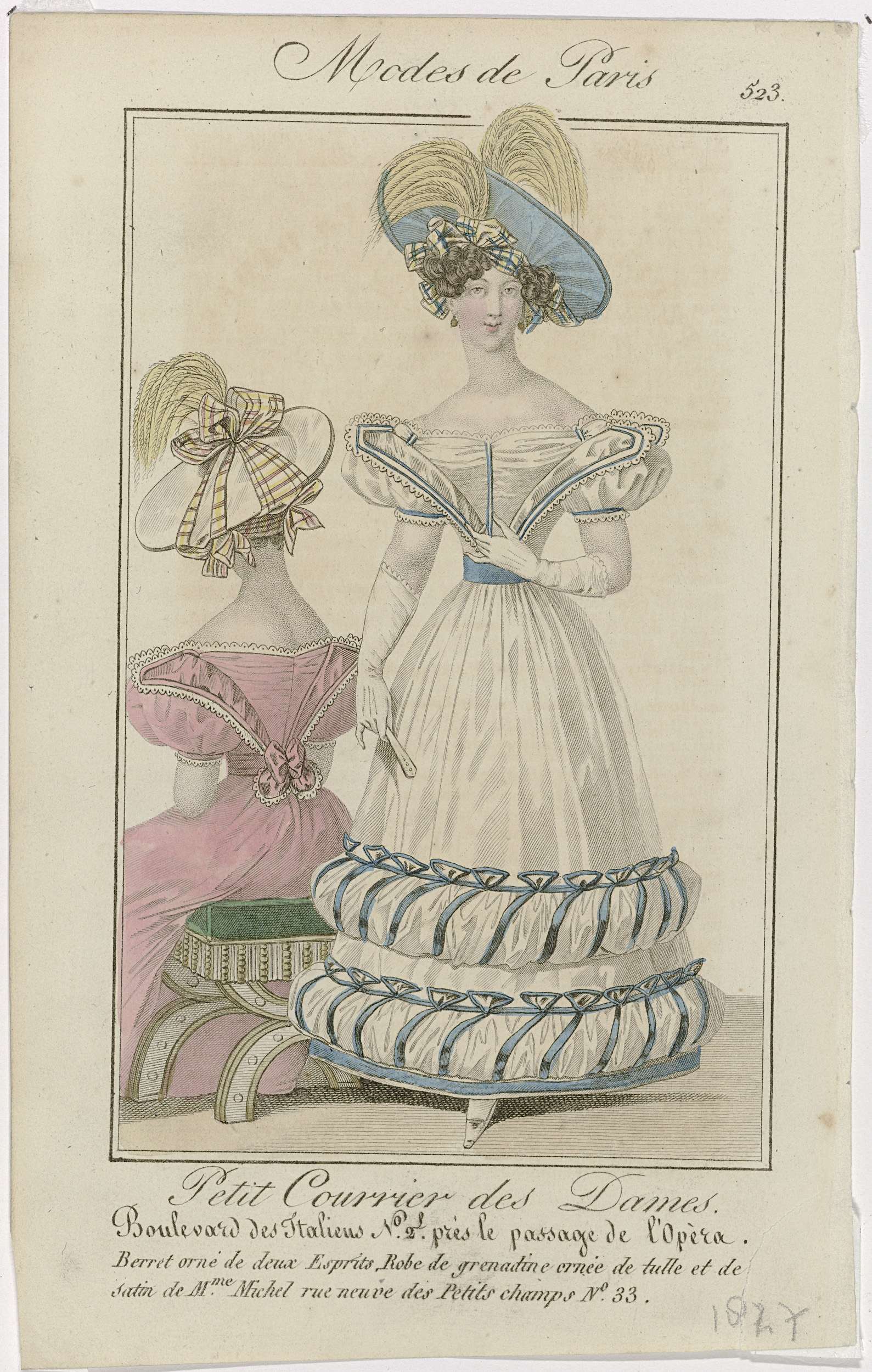 Petit Courrier des Dames, 1827, No. 523 : Berret orn...