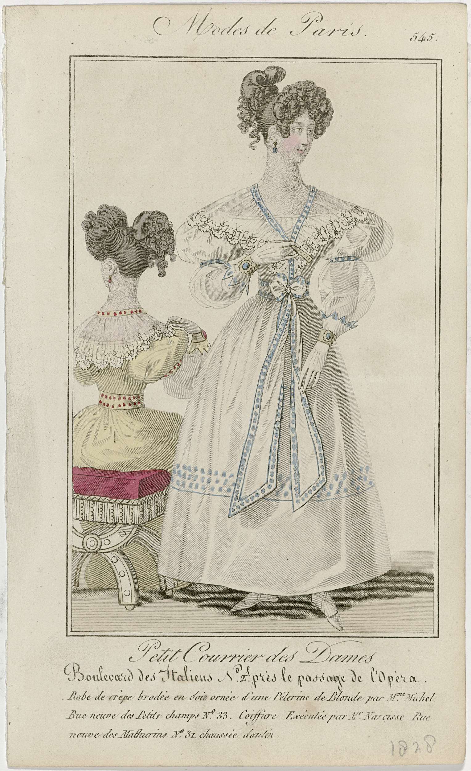 Petit Courrier des Dames, 1828, No. 545 : Robe de cr...