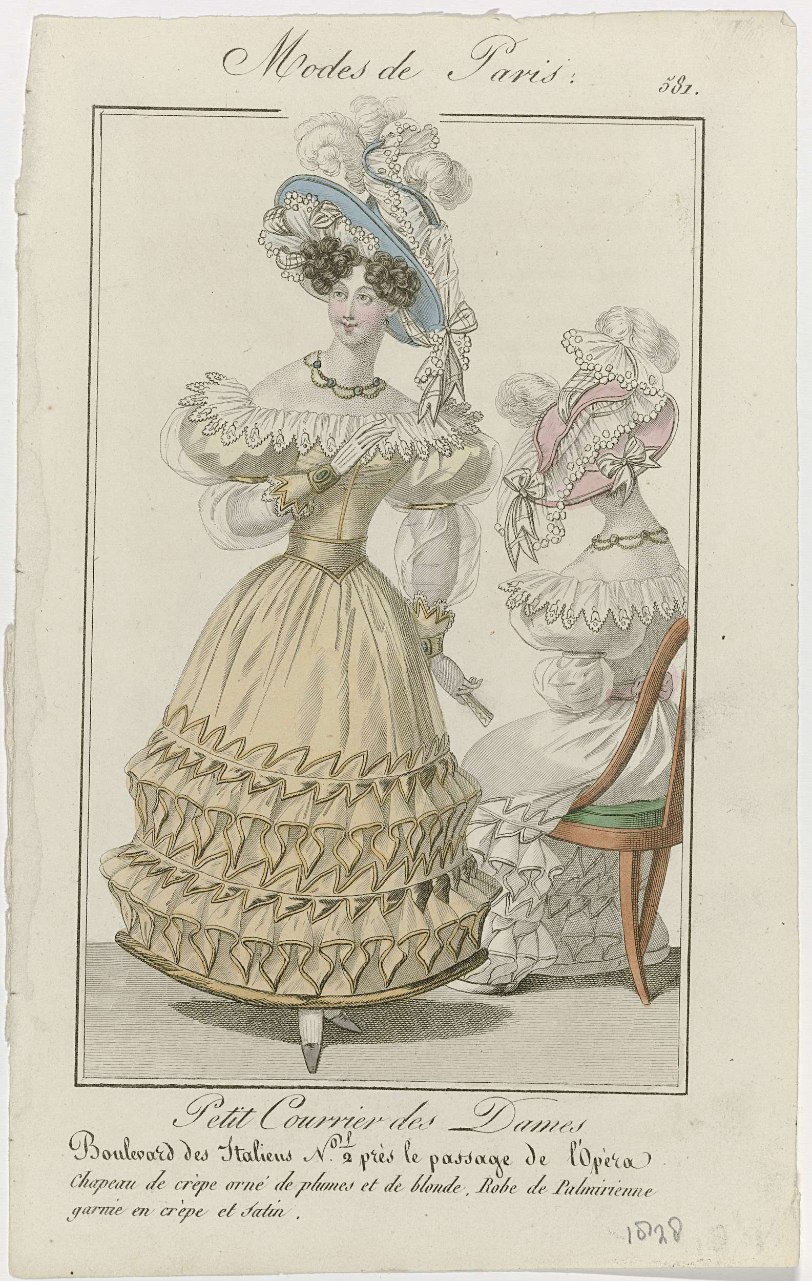 Petit Courrier des Dames, 1828, No. 581 : Chapeau de...
