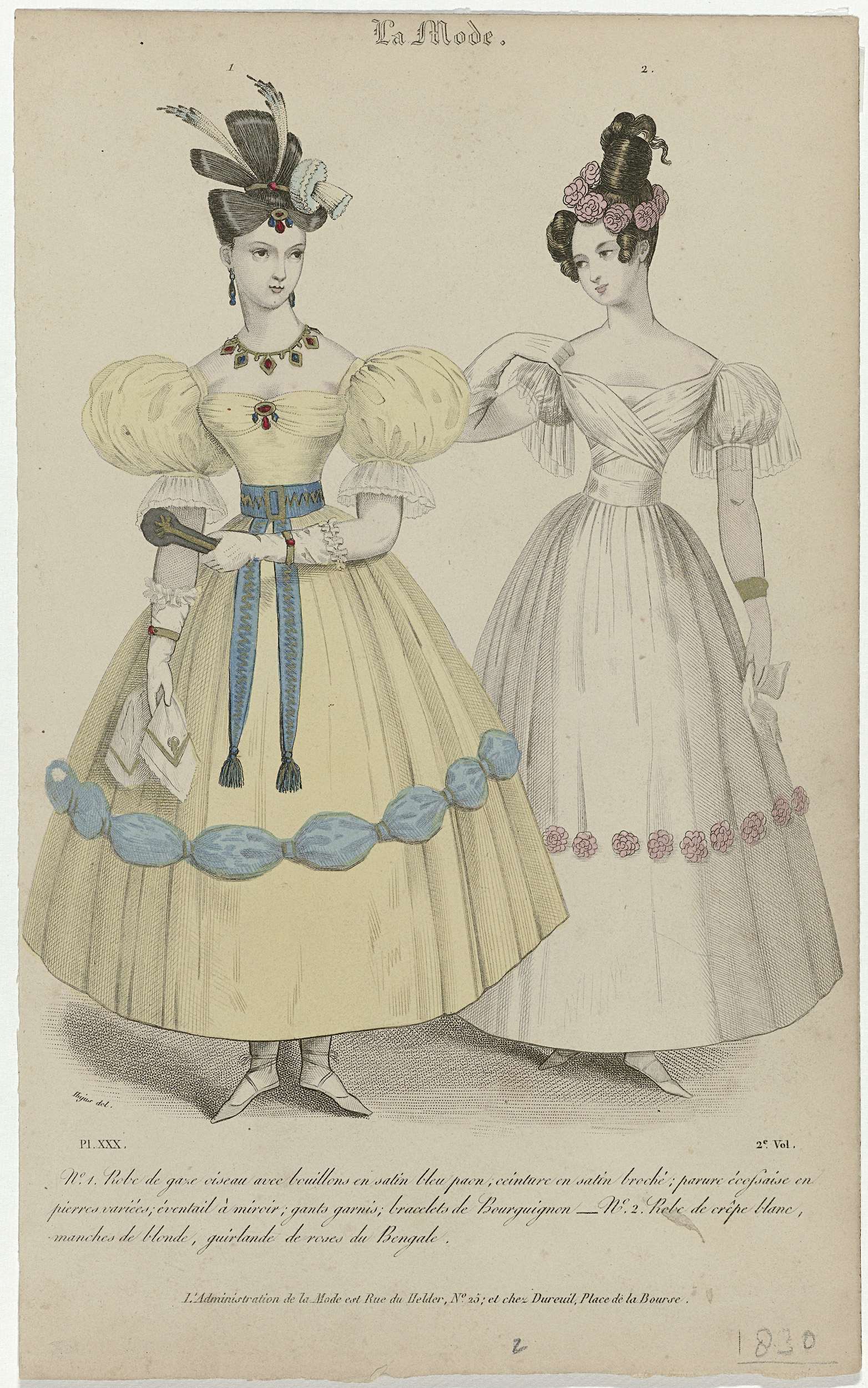 La Mode, 1830, Pl. 30 : No.1. Robe de gaze ciseau (...)