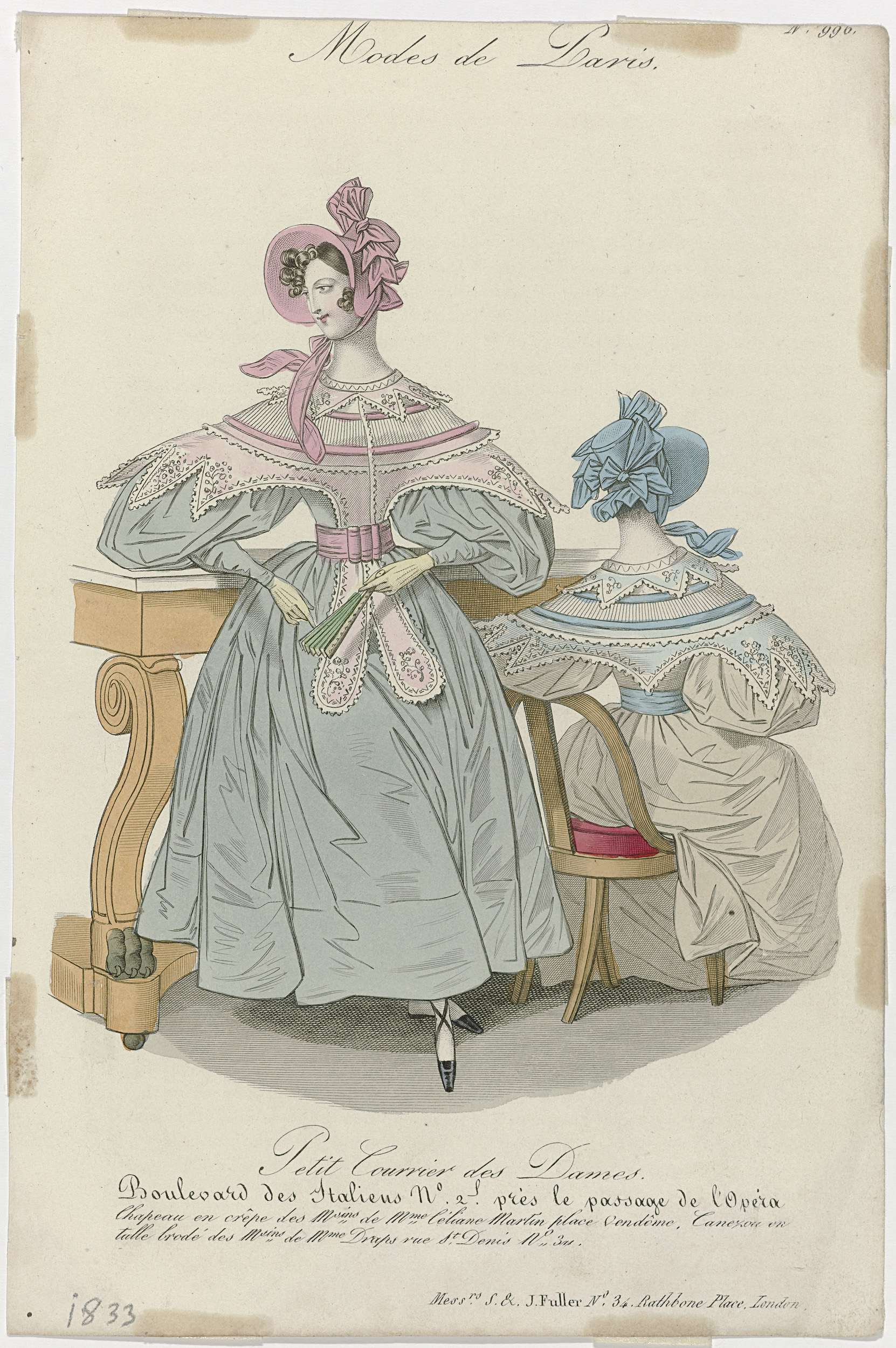 Petit Courrier des Dames, 1833, No. 996 : Chapeau en...