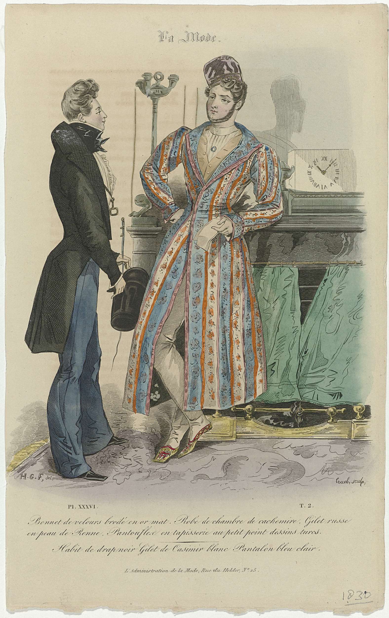 La Mode, 1830, Pl. 36, T.2 : Bonnet de velours brodé...