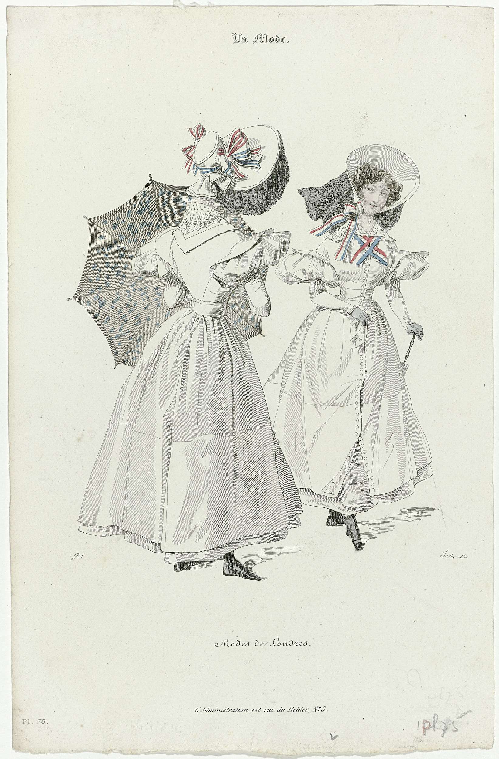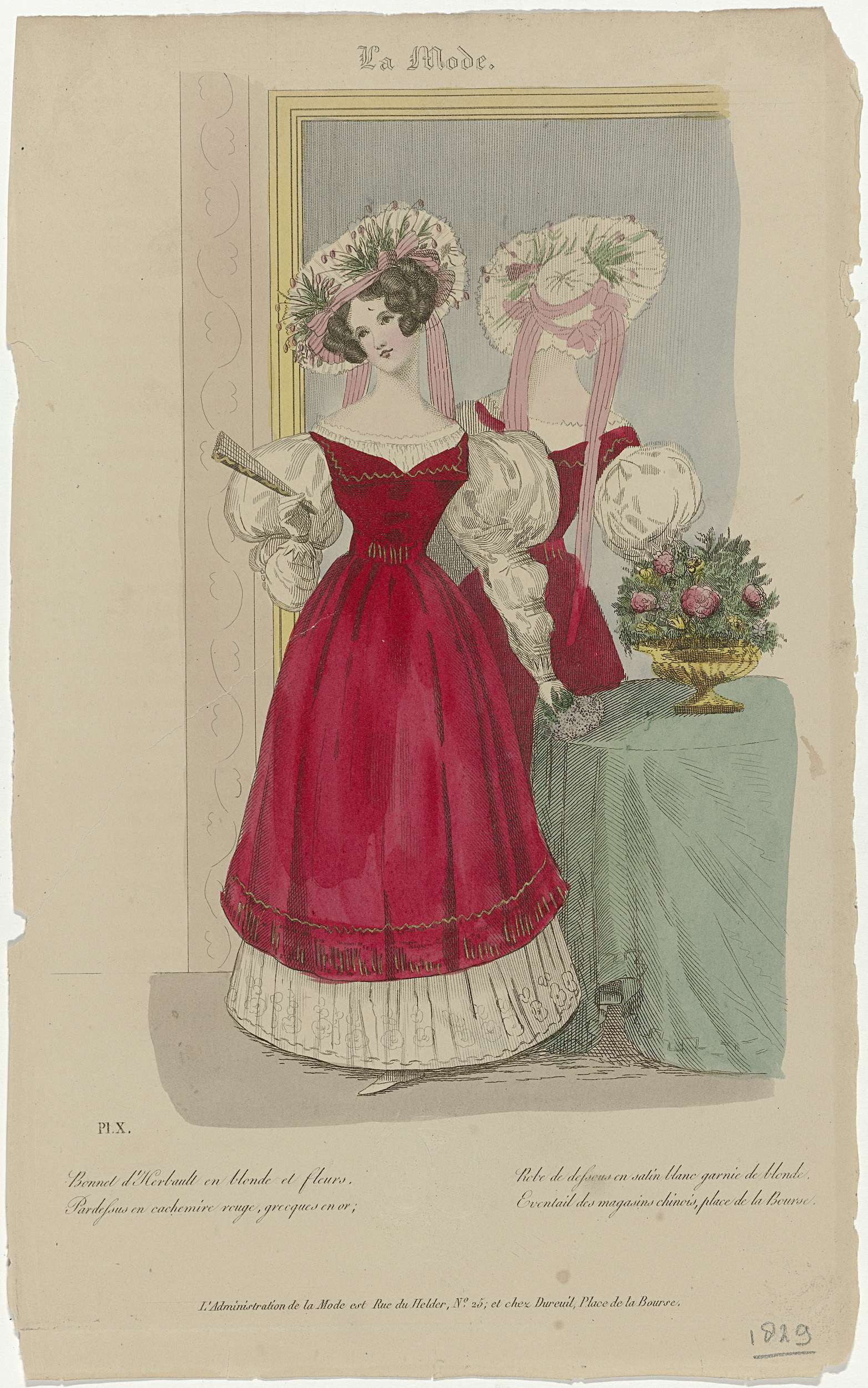 La Mode, 1829, Pl. 10 : Bonnet d'Herbault en blond (...