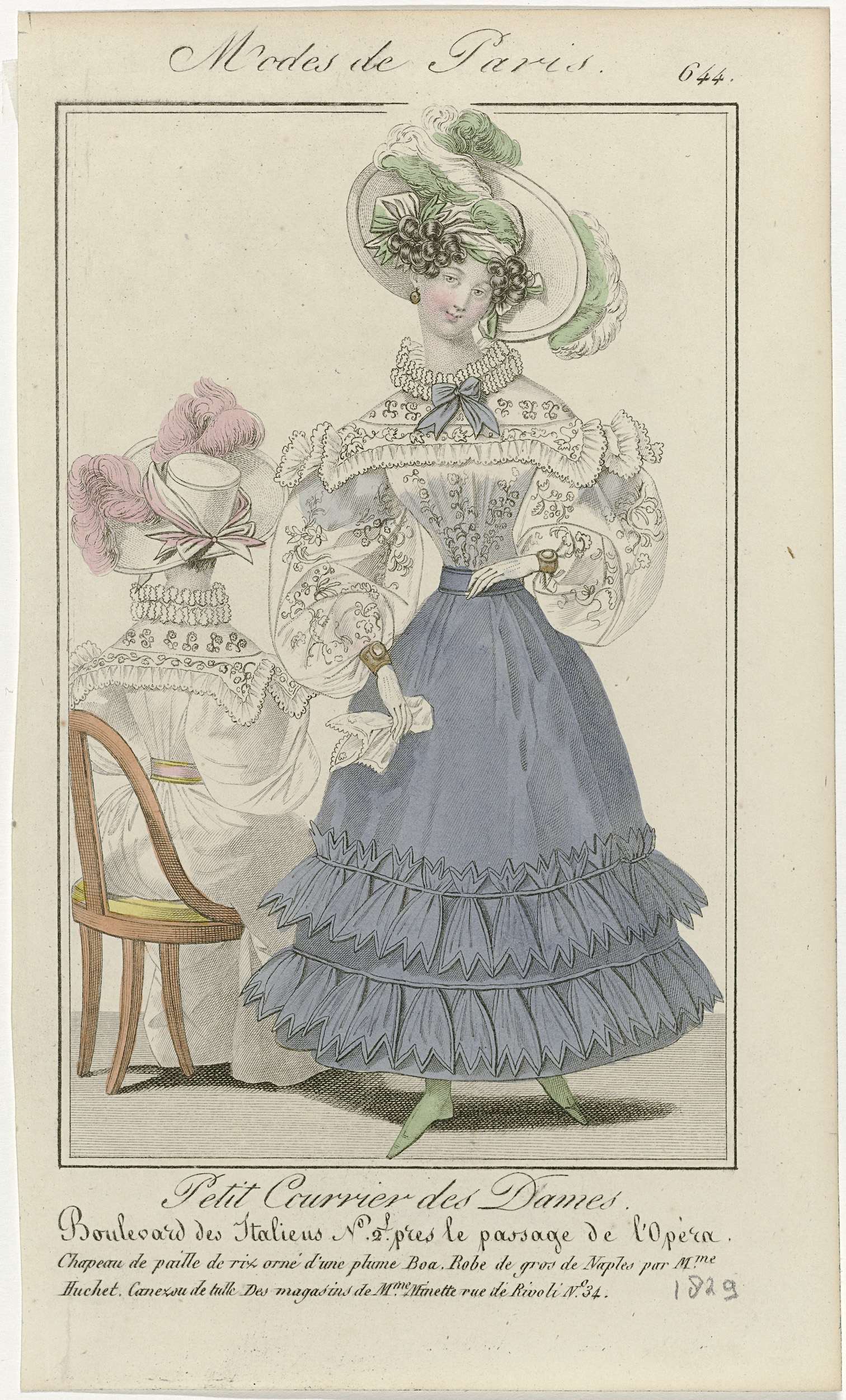 Petit Courrier des Dames, 1829, No. 644 : Chapeau de...
