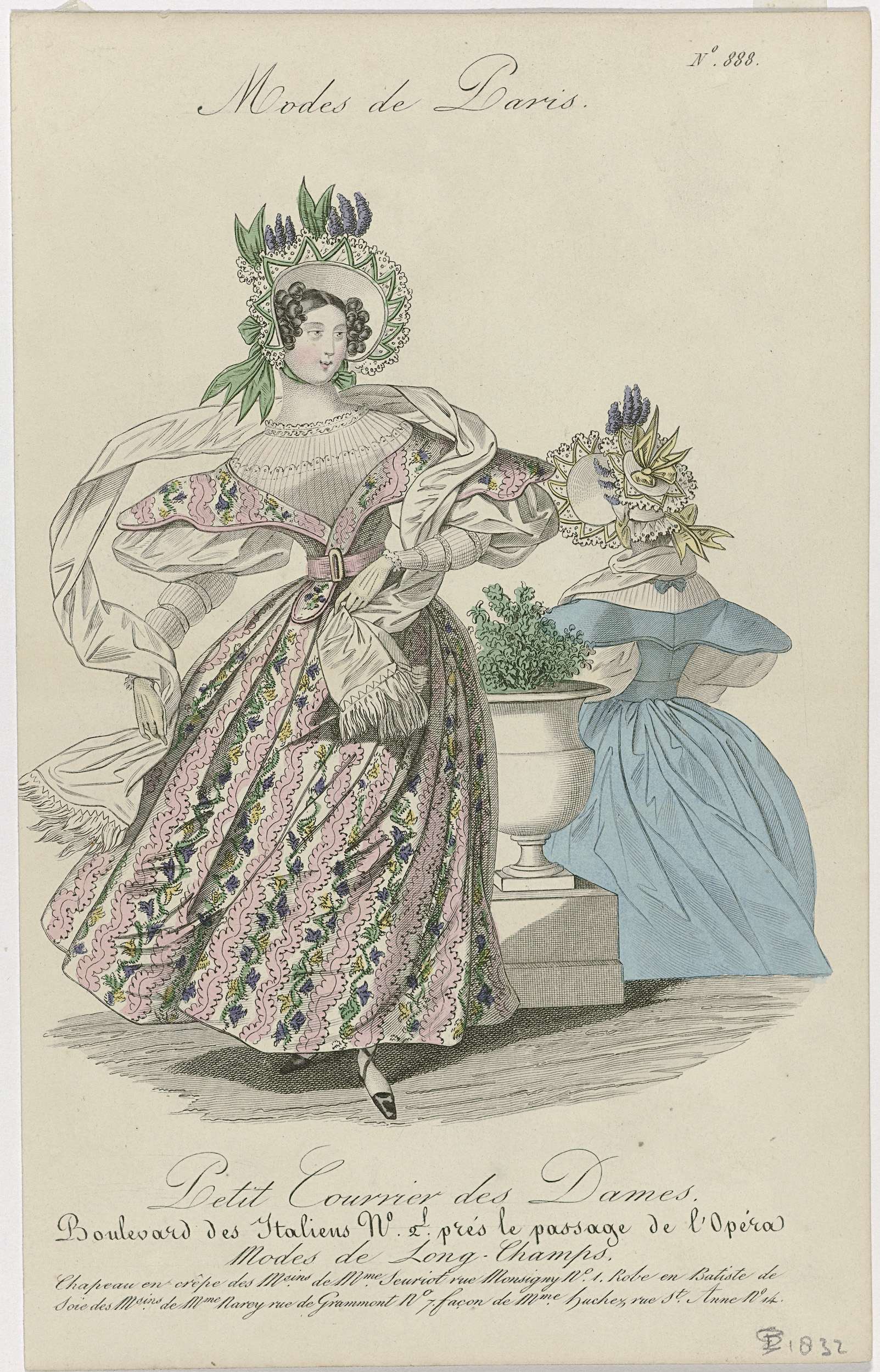 Petit Courrier des Dames, 1832, No. 888 : Chapeau en...
