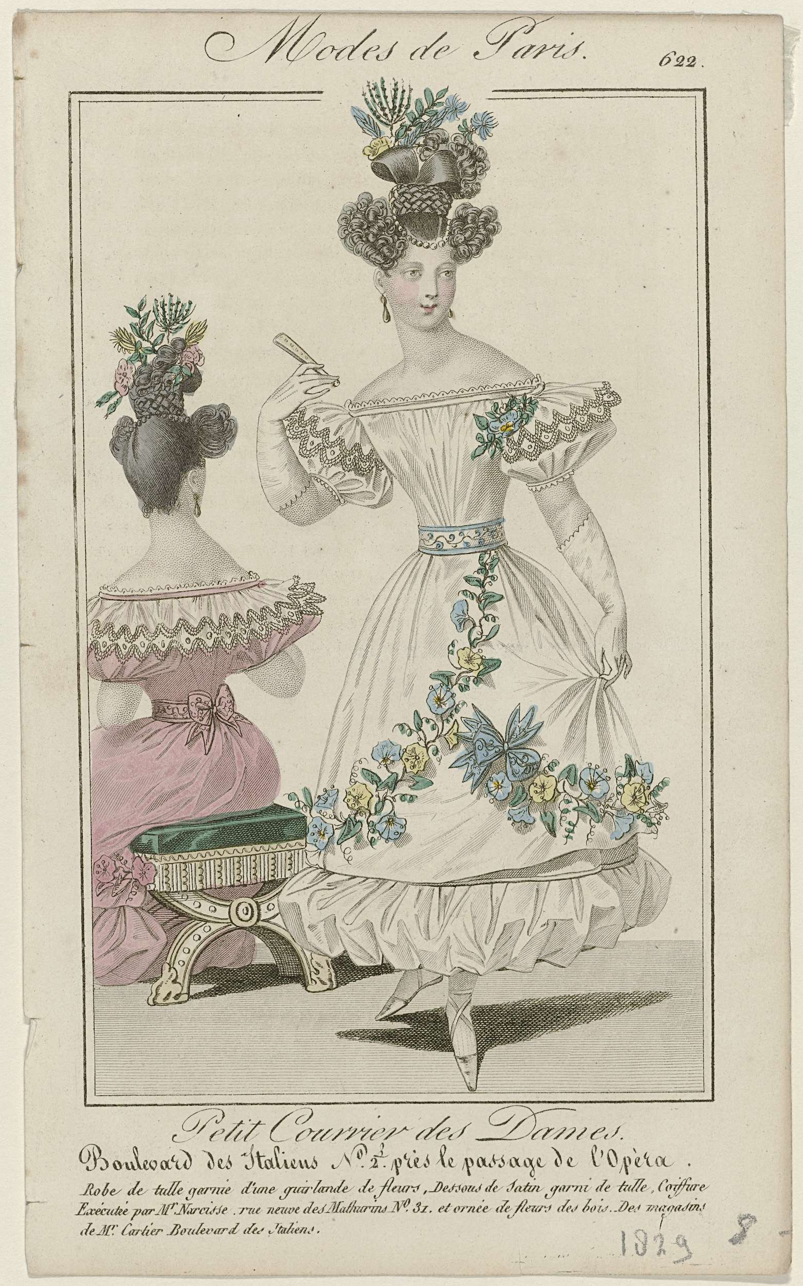 Petit Courrier des Dames, 1829, No. 657 : Coiffure E...