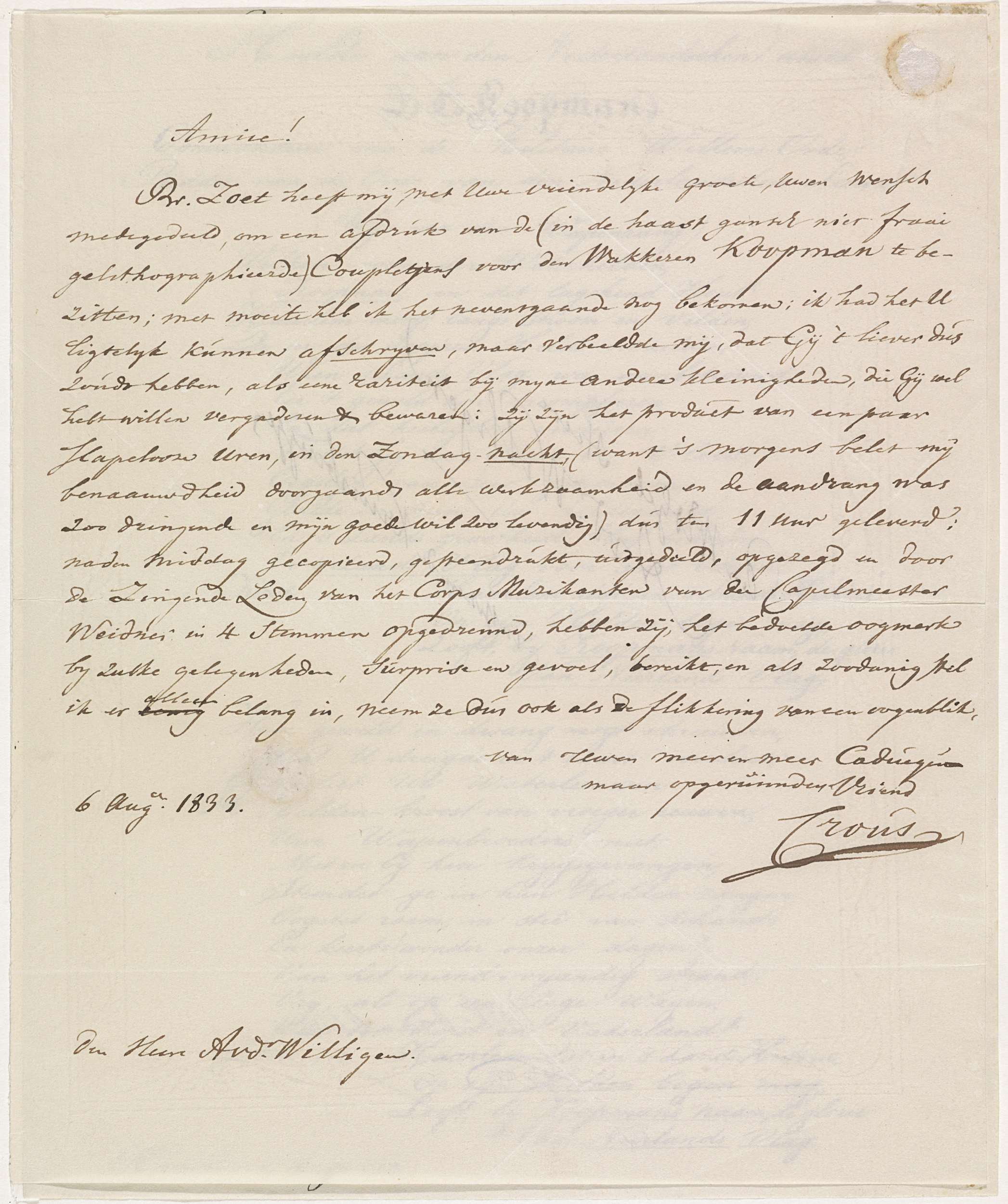 Brief van een generaal aan J.D.B. Wilkens over het c...