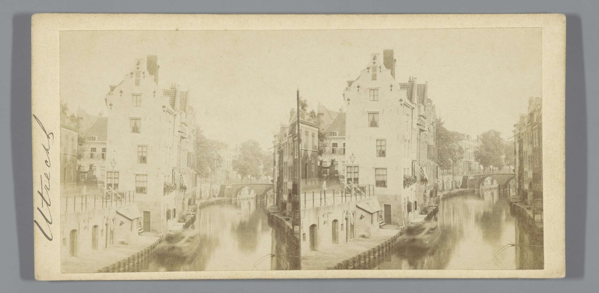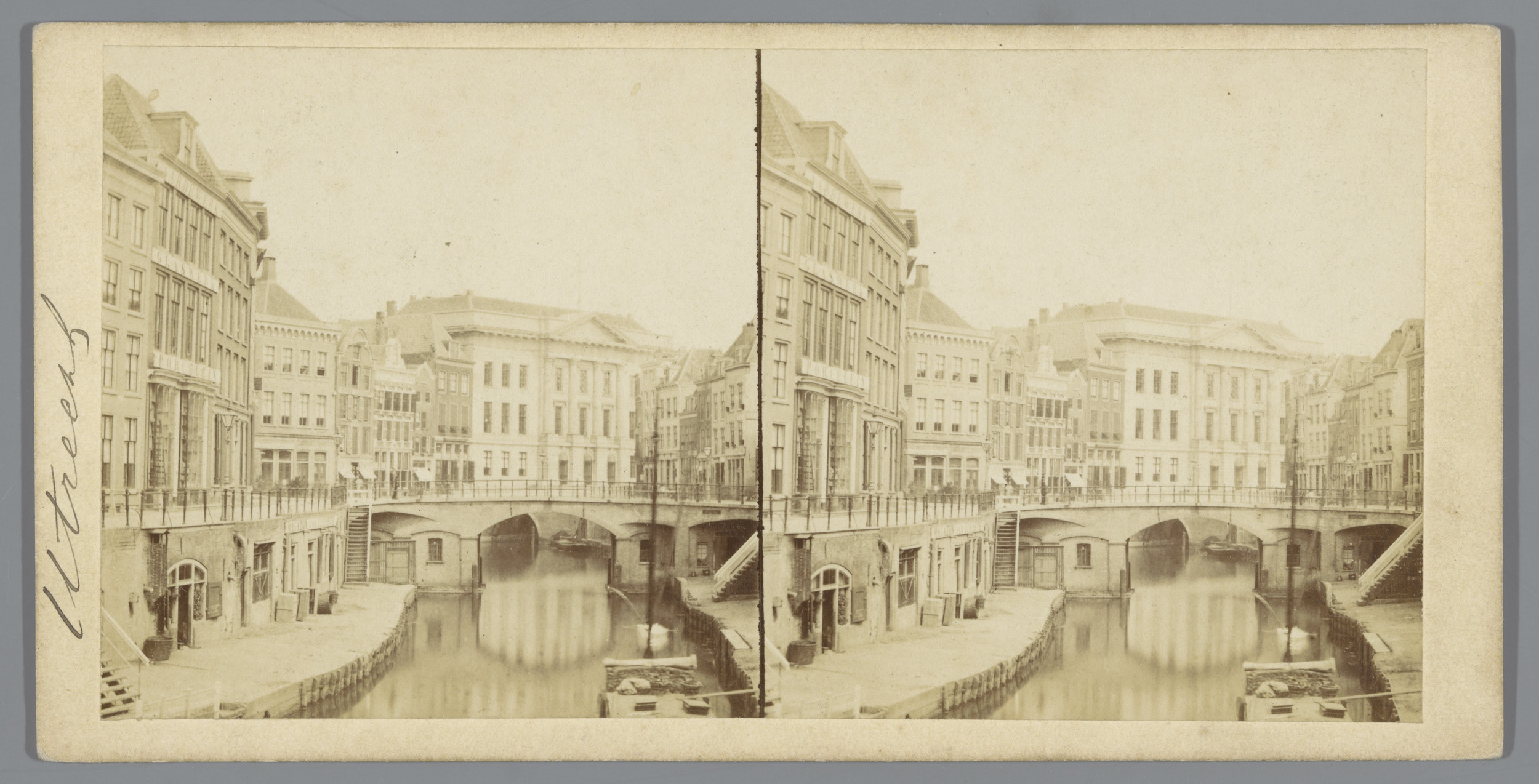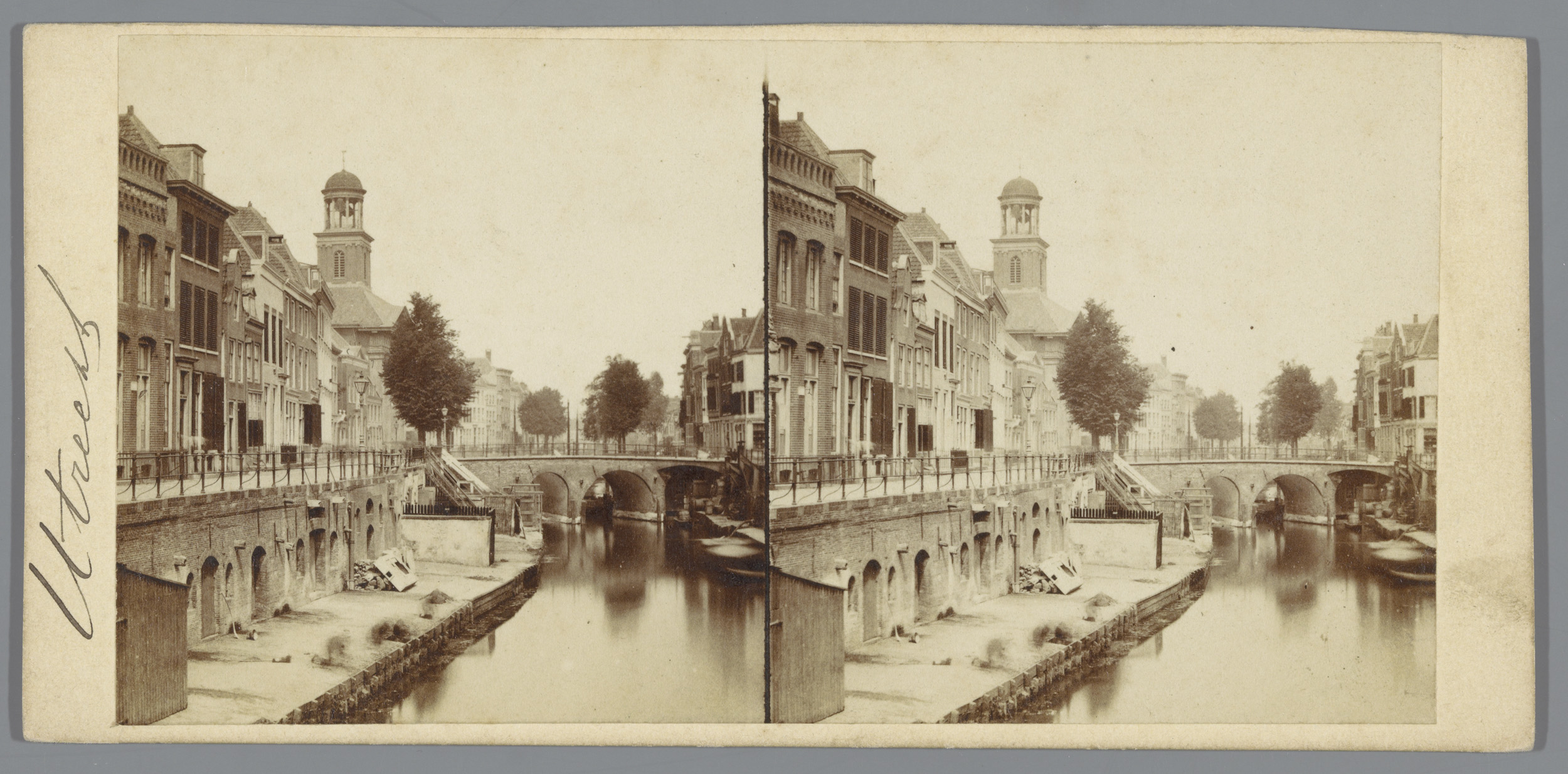 Gezicht op de Oudegracht en het stadhuis, Utrecht