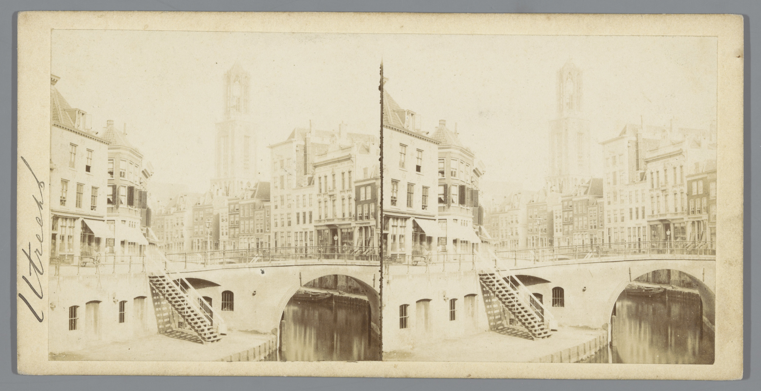 Gezicht op de Oudegracht met de Dom en de Bakkerbrug...