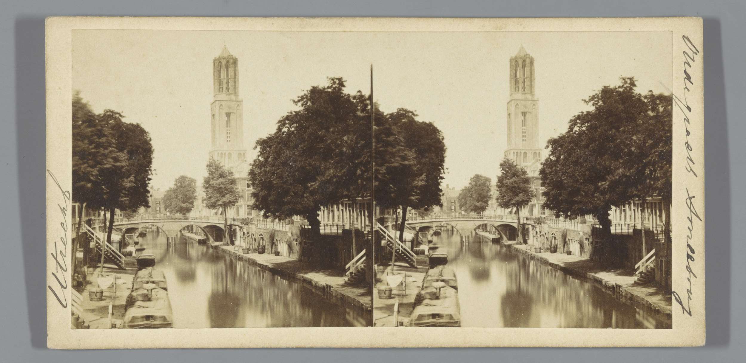 Gezicht op de Oudegracht en de Dom, gezien vanaf de ...