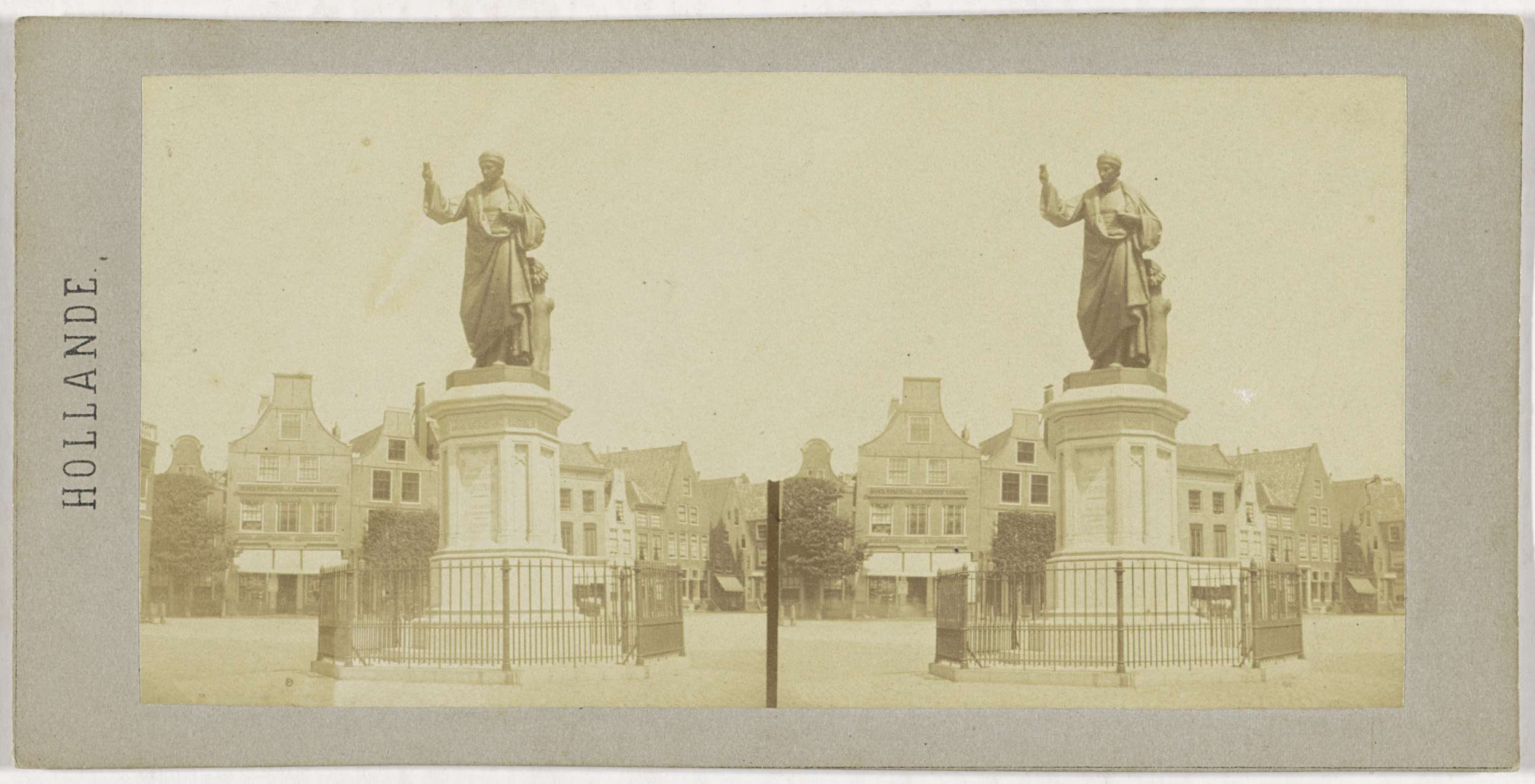 Gezicht op het standbeeld van Laurens Koster in Haarlem