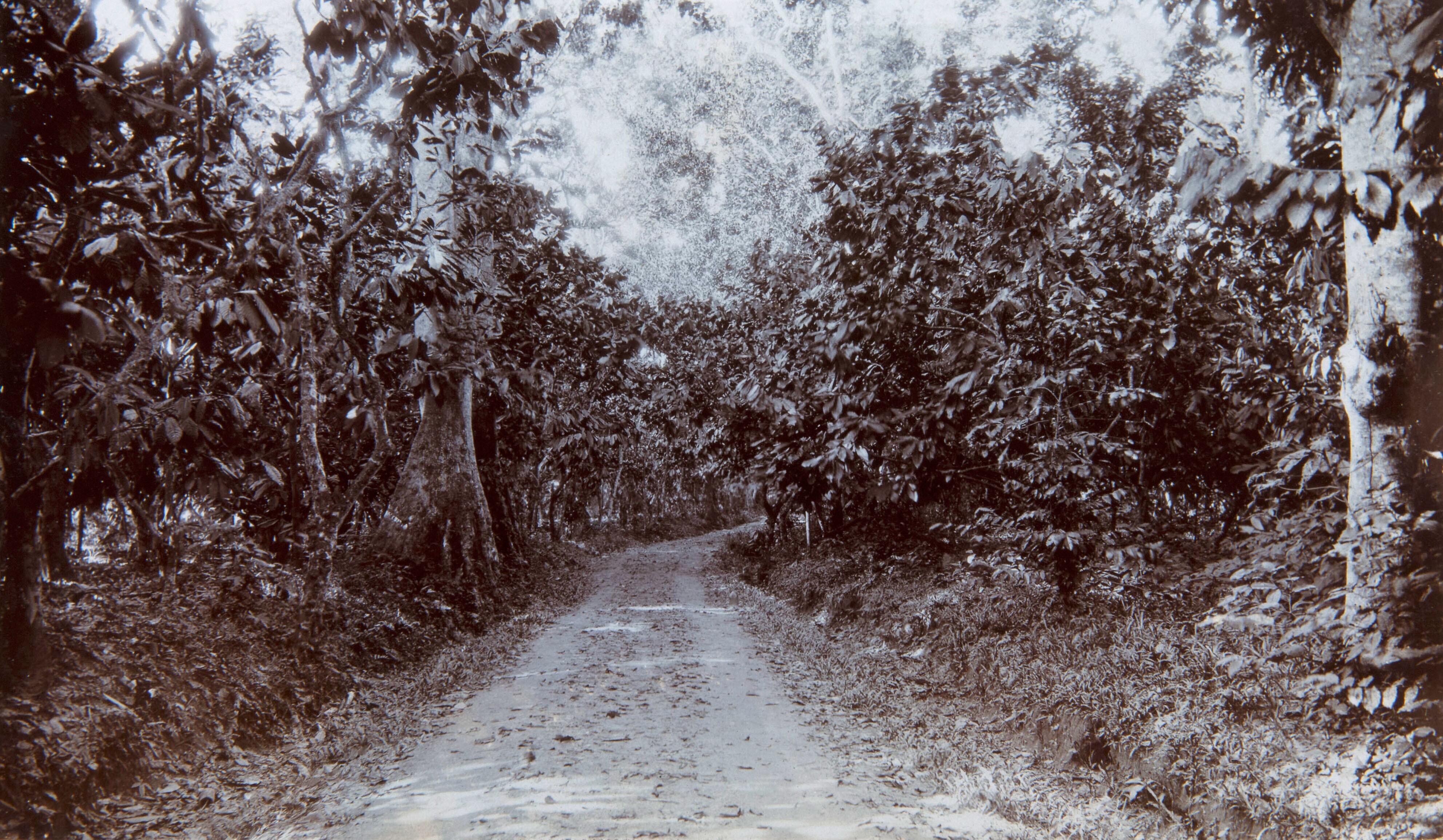 Weg door een cacaoplantage