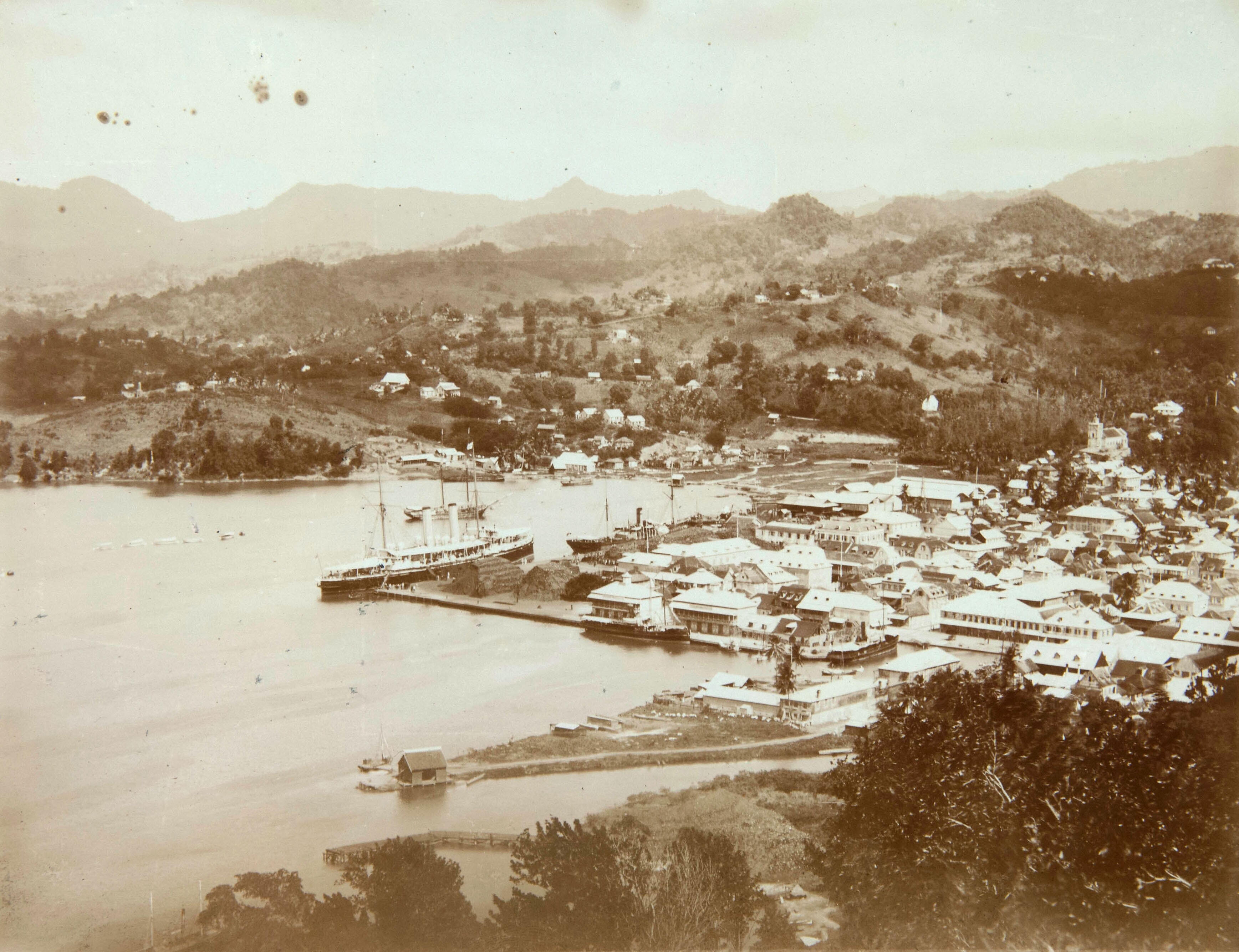 Overzicht van de haven en de stad Castries