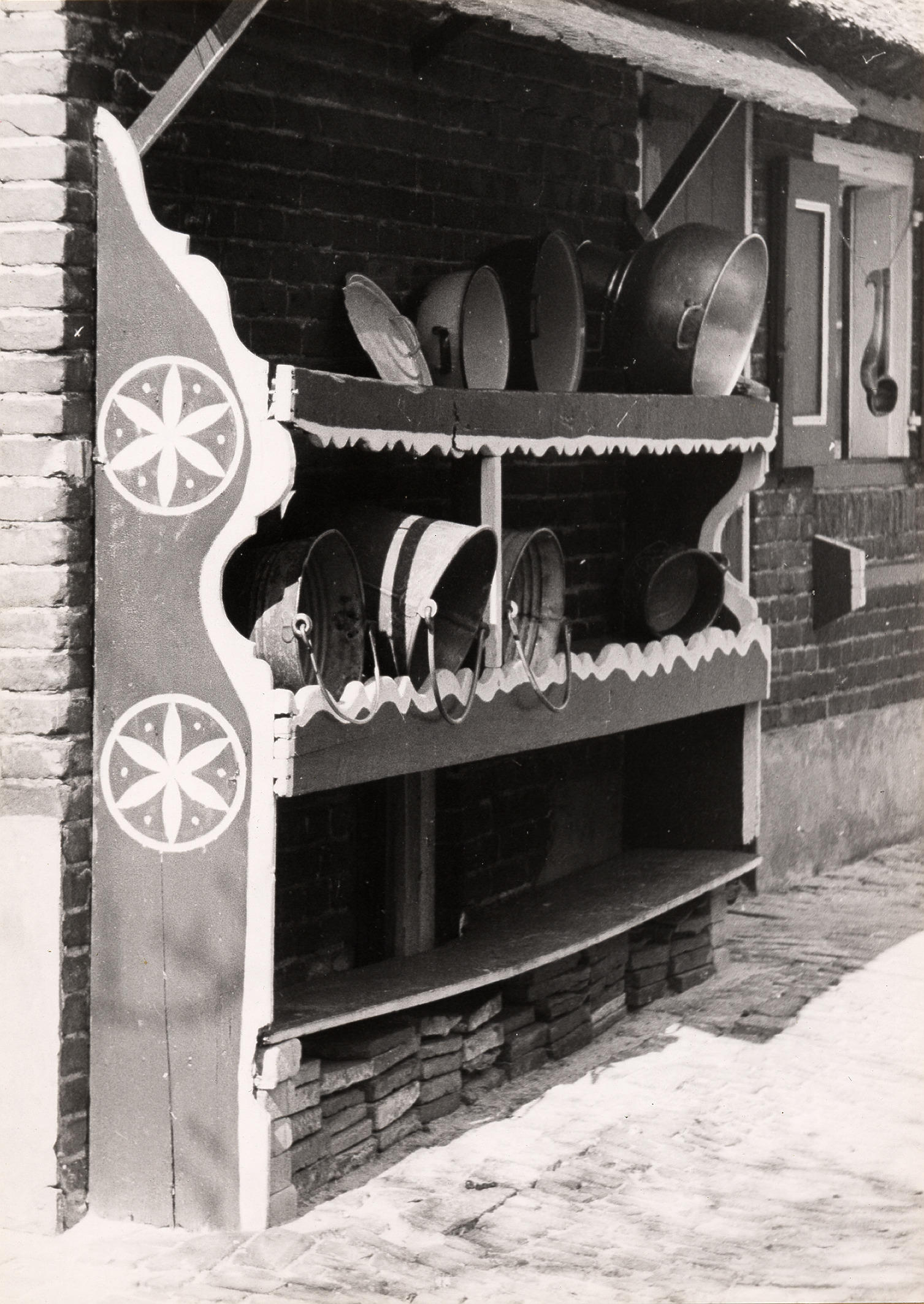 Melkbussenrek en speelhuisje, Staphorst, 1944 (zwart...