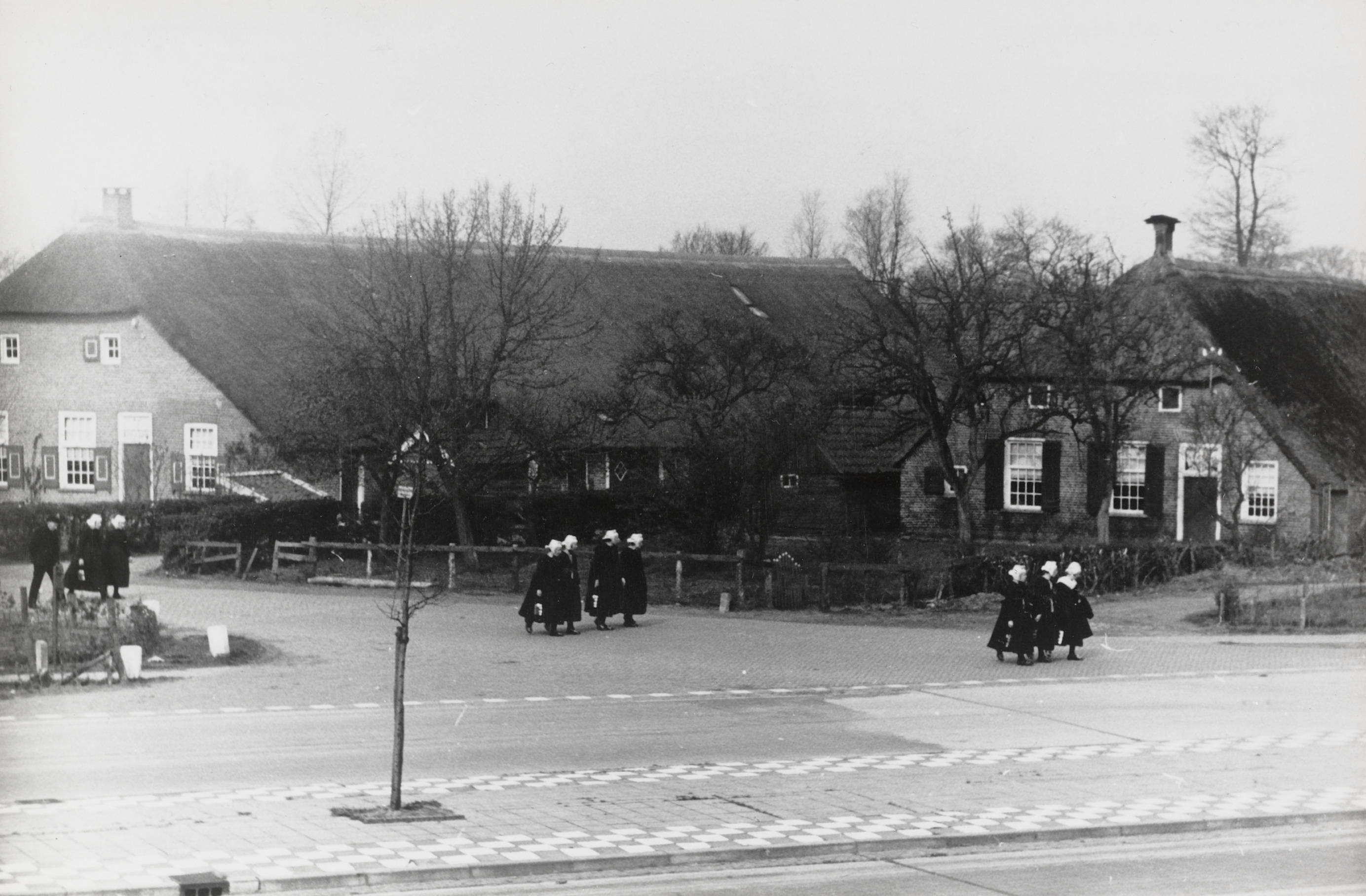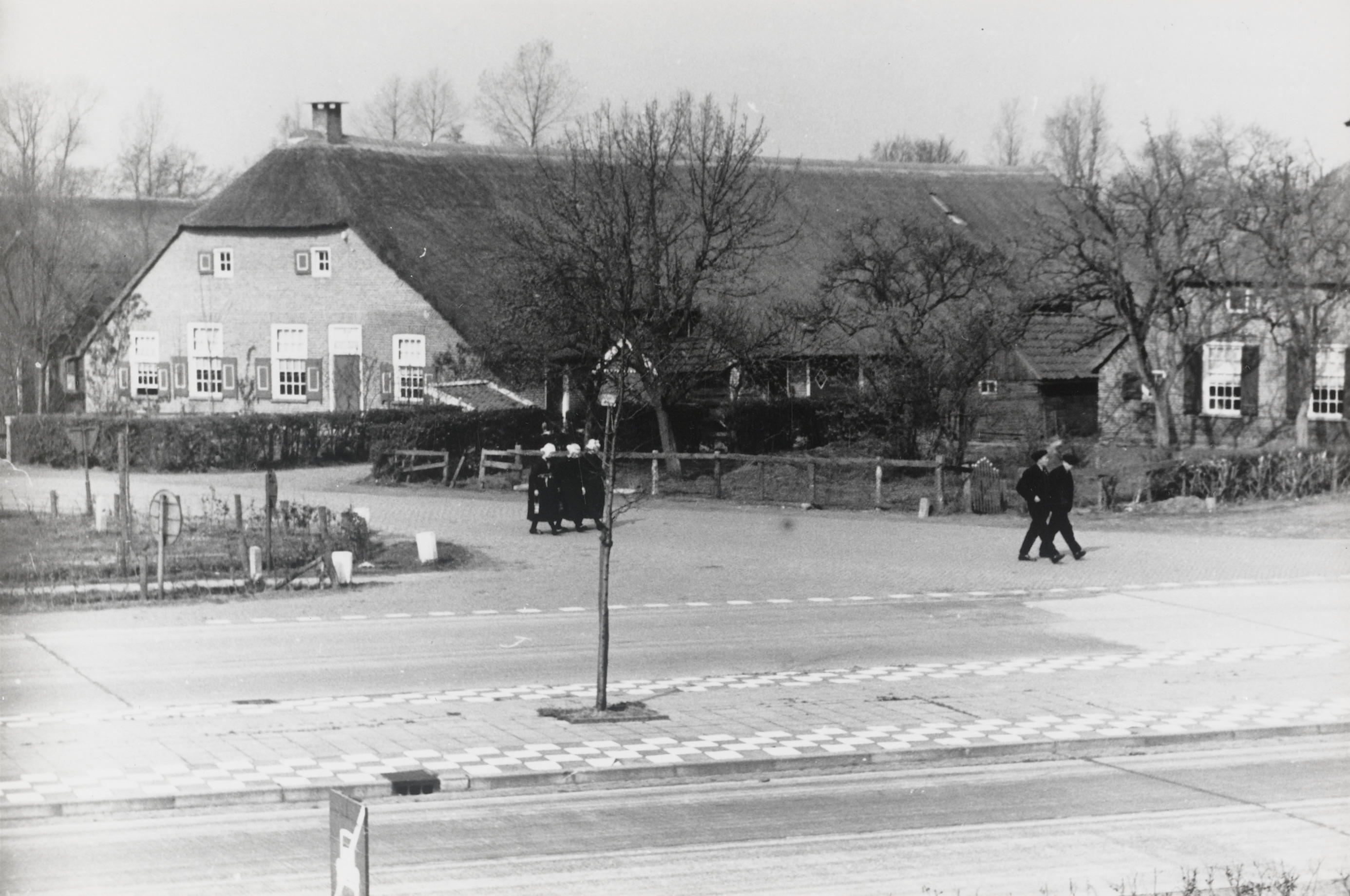 Kerkgangers ter hoogte van 'De Hoek', Staphorst, 194...