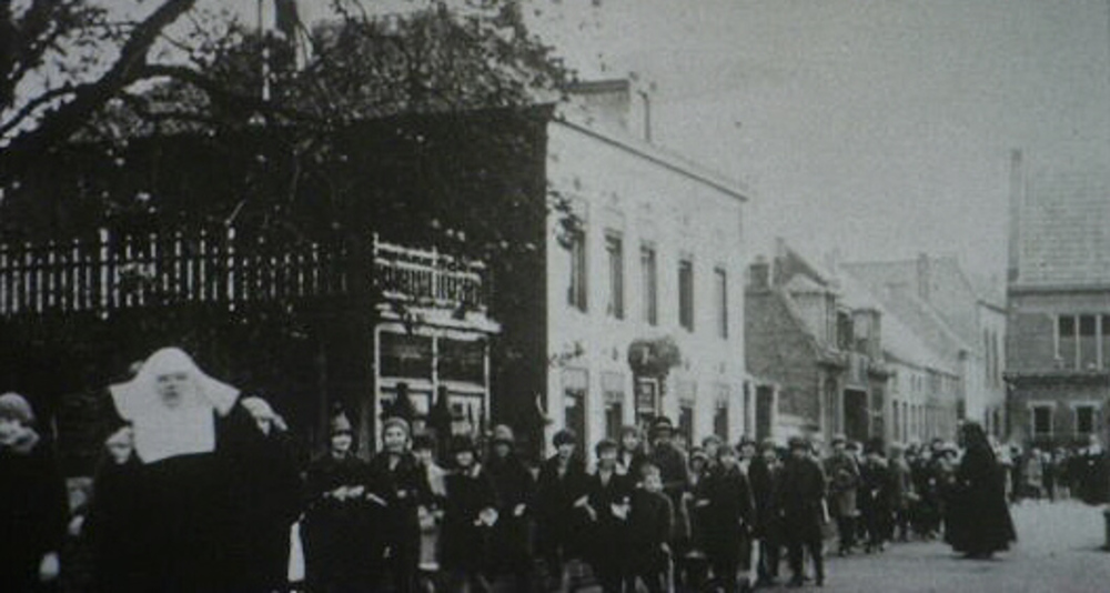 Zusters van de Agnesschool met leerlingen op weg naa...
