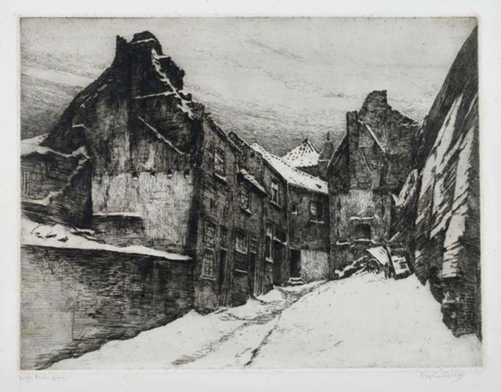 Huizen aan de Keumegas in Nijmegen in de sneeuw
