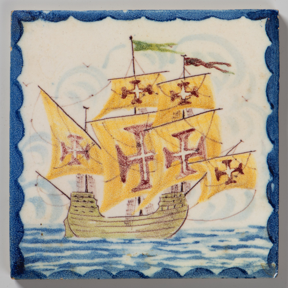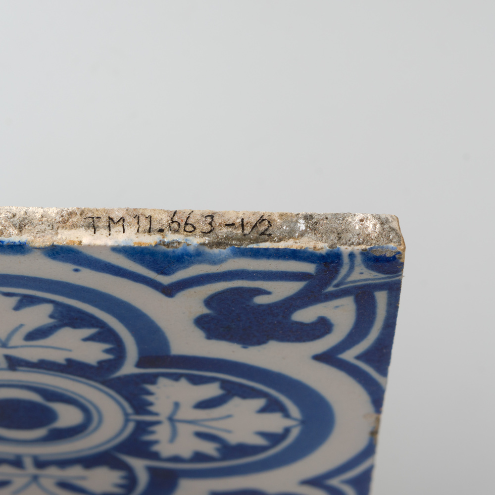 tegel van keramiek in onderglazuur, voorstellende: 1...