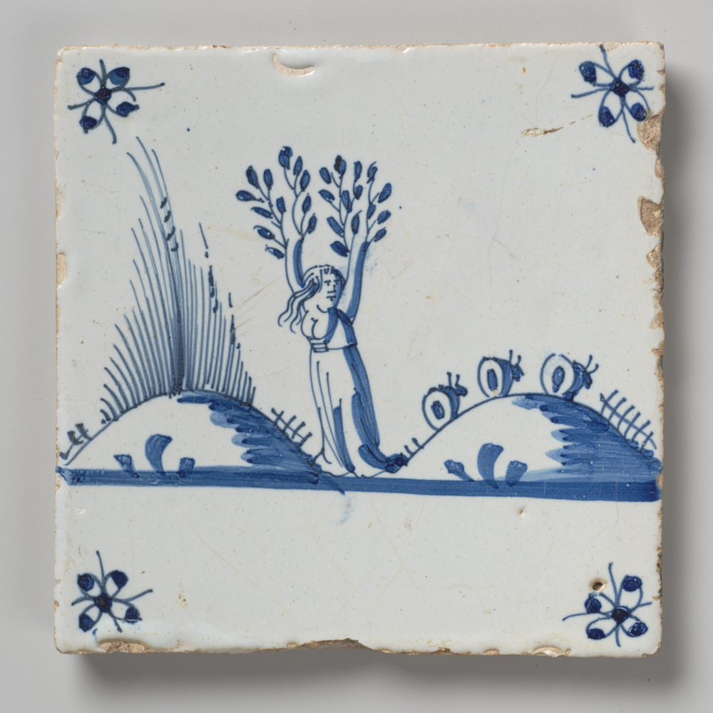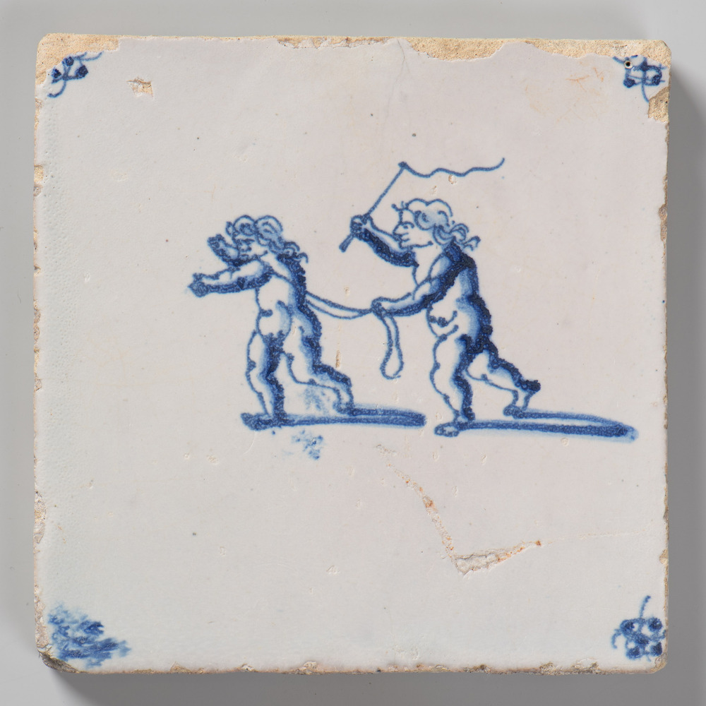 tegel van aardewerk met tinglazuur, voorstellende: h...