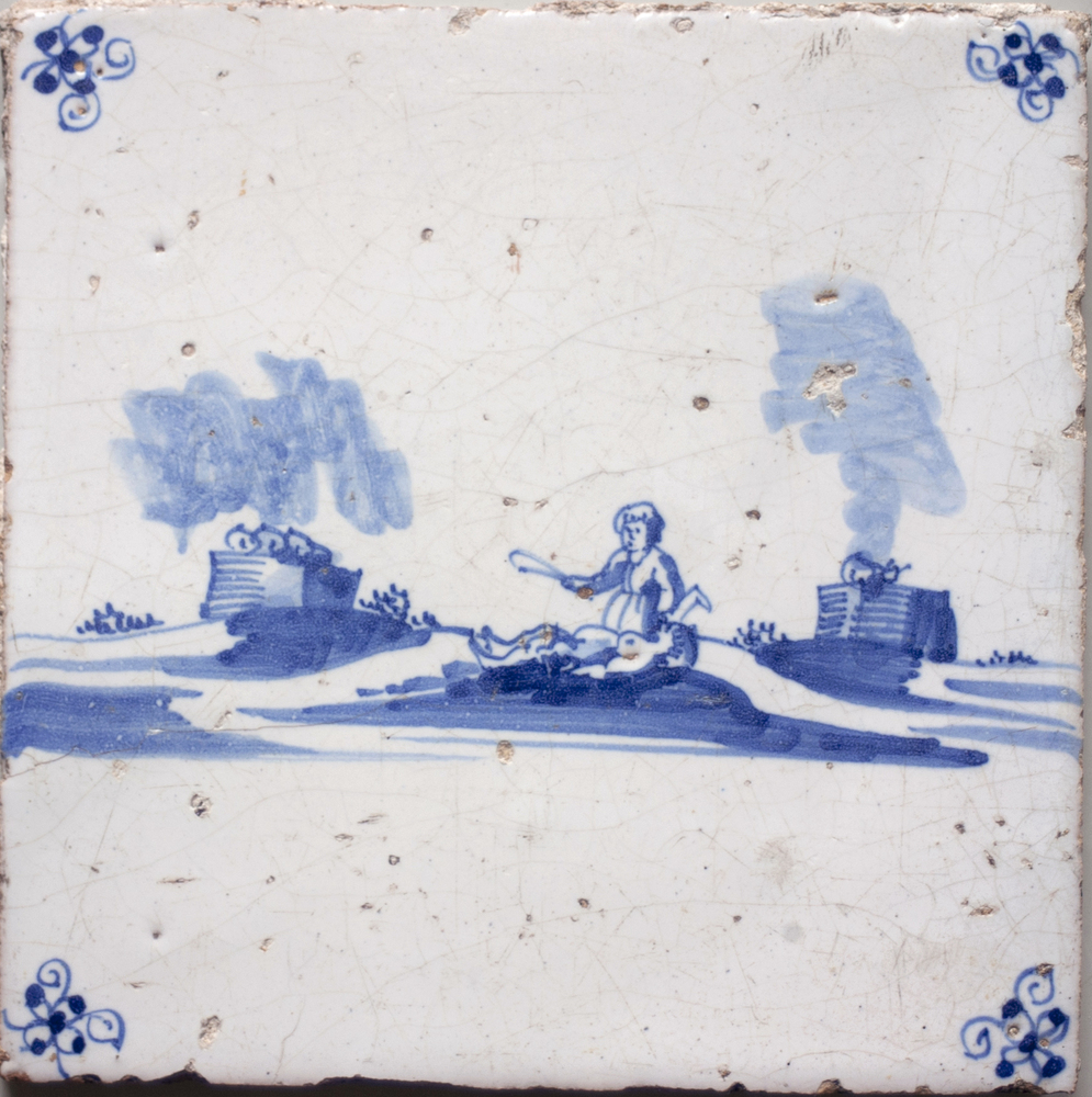 tegel van aardewerk met tinglazuur, voorstellende: m...