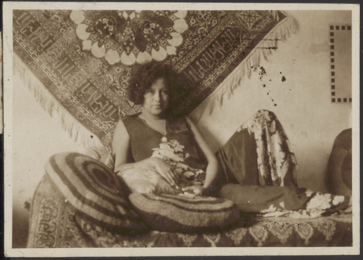 Portret van een Indo-Europese jonge vrouw op de sofa