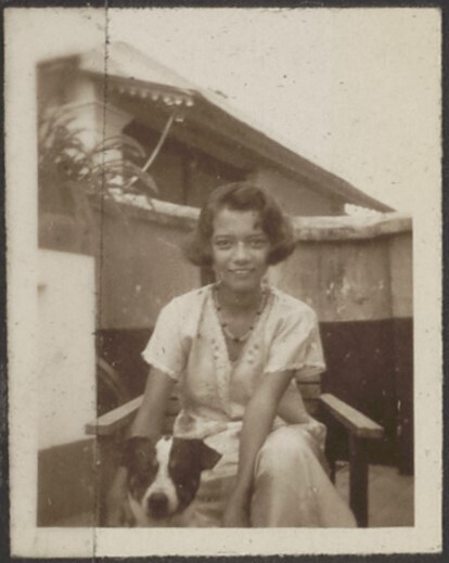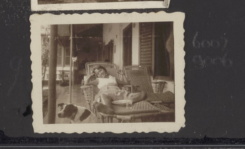 Elly Maagdenberg, op de voorgalerij van pension Have...