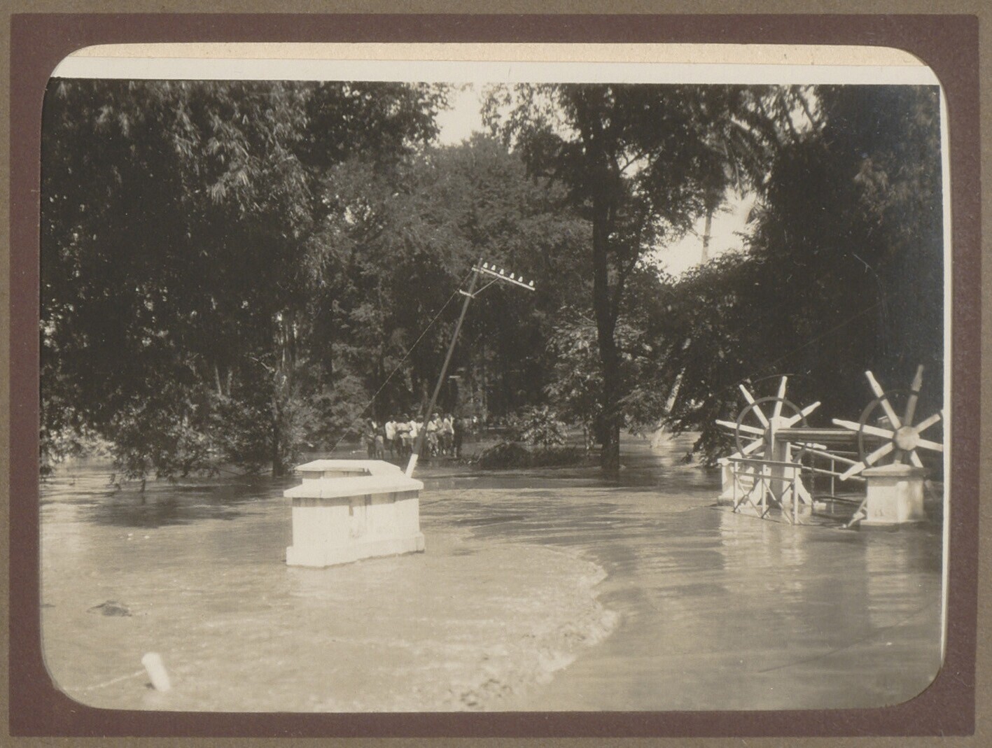 Hoogwater in een dorp met sluis
