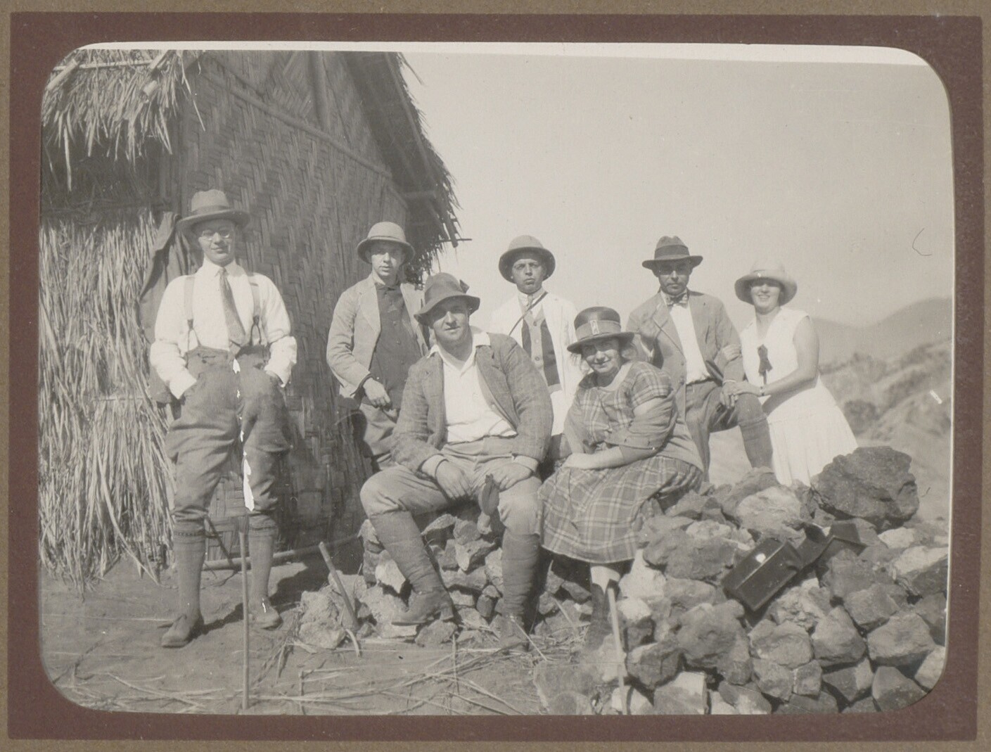 Groep Europeanen bij een hut