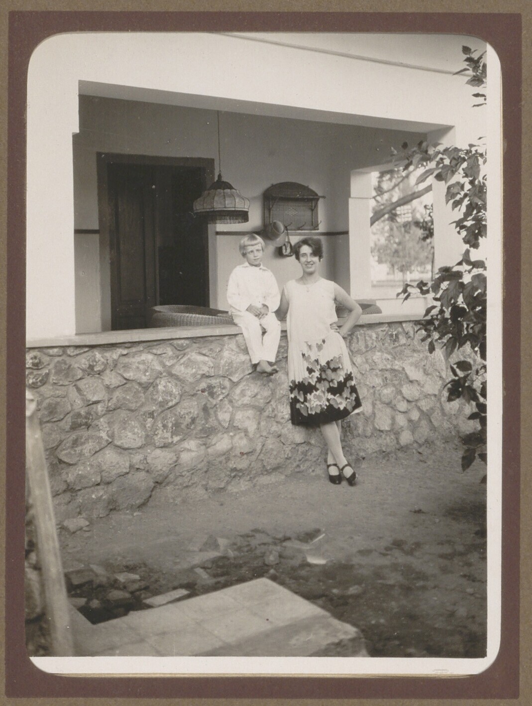 Europese vrouw en meisje op een veranda