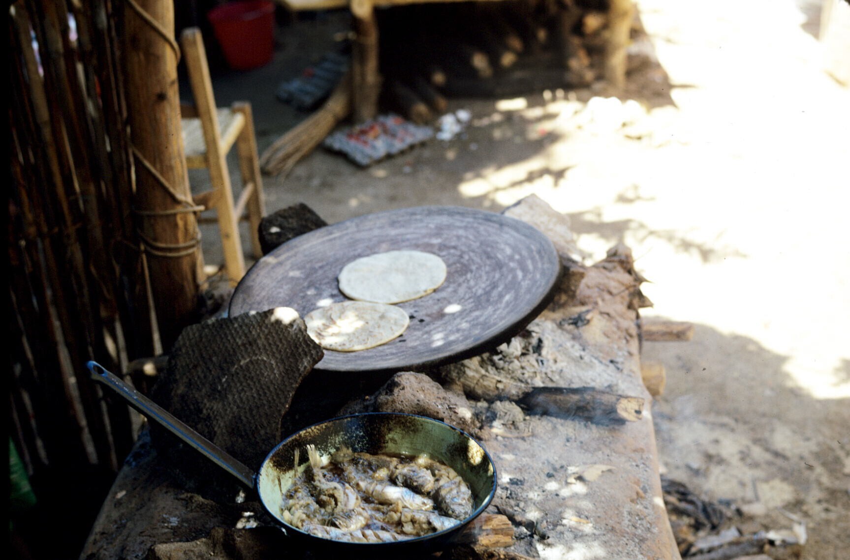 bakplaat (comal) met tortillas op markt