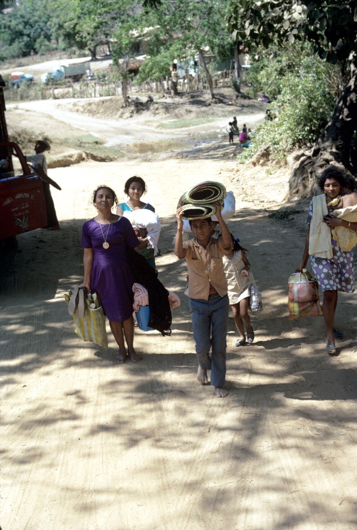 mensen, vertrekkend van markt met gekochte waar