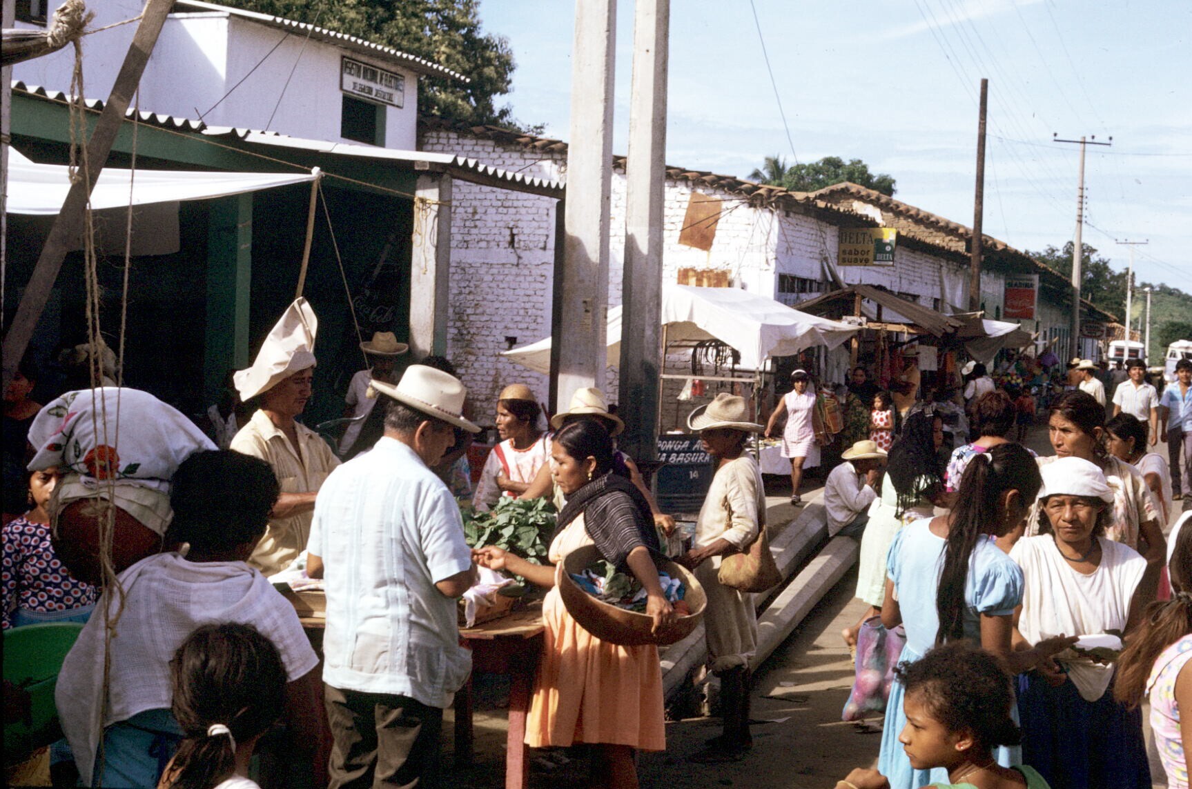 straatscène met vrouwen in lokale dracht, mannen in ...