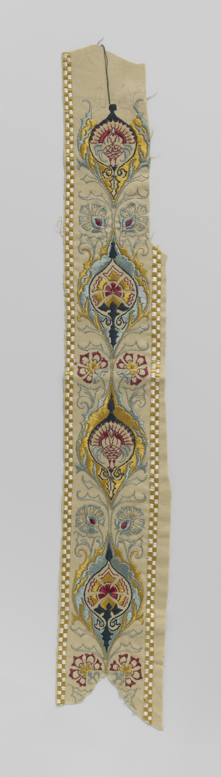 Onvoltooid fragment borduurwerk met een repeterend m...