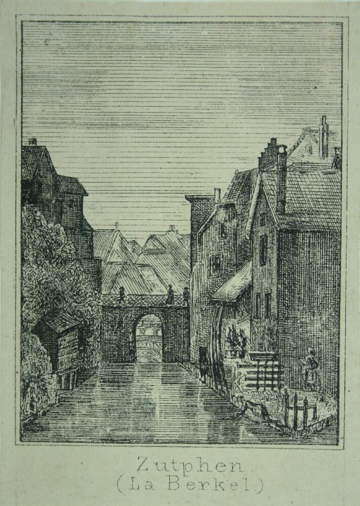 Gravure "De stad Deutinchem langs den ouden Yssel" o...