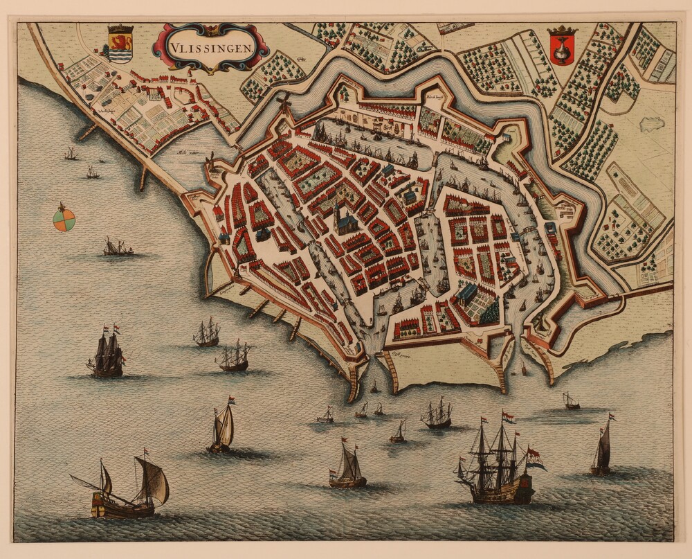 plattegrond Zaltbommel met grachten en wallen. Opsch...