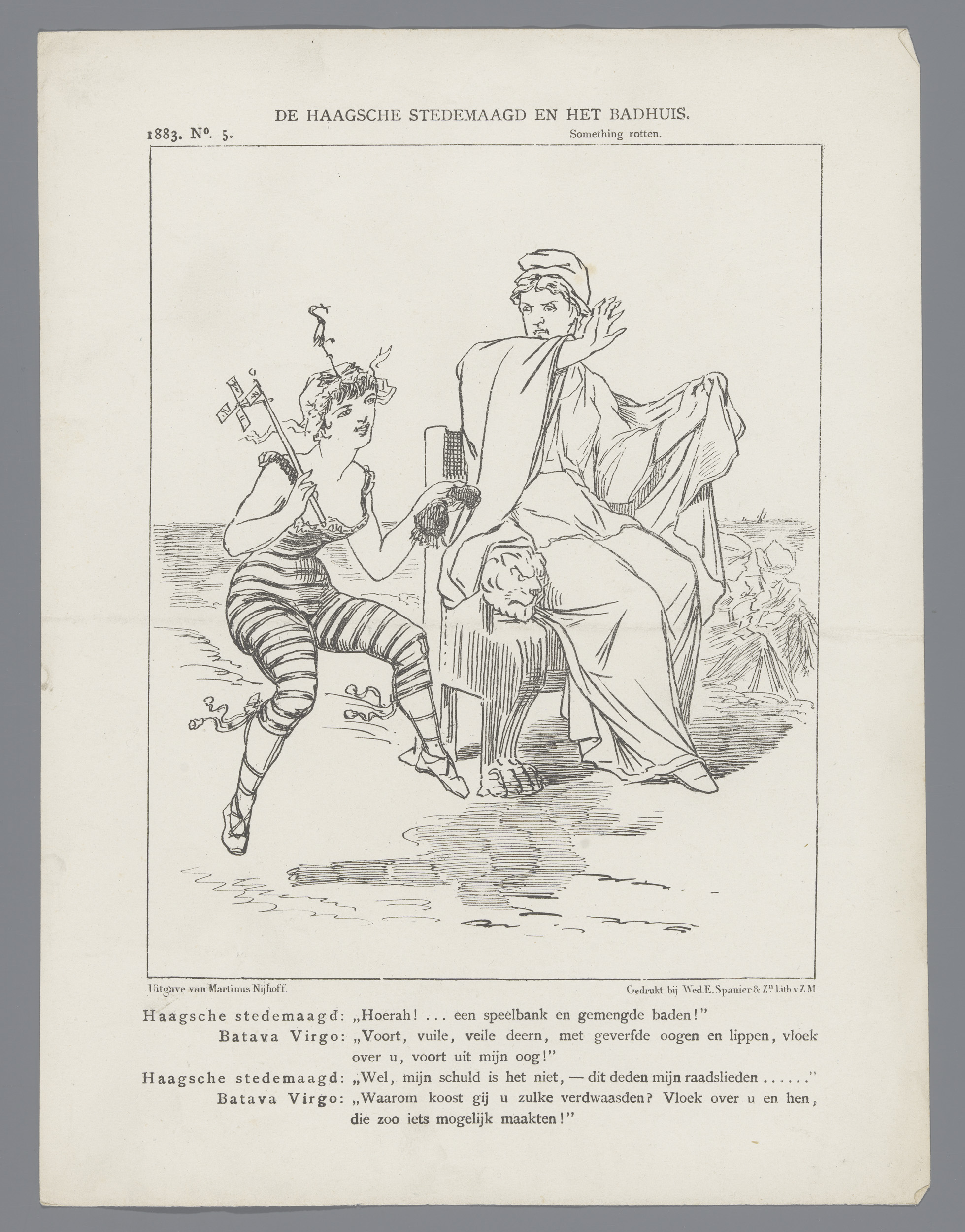 Politieke spotprent over het badhuis te Den Haag, 1883