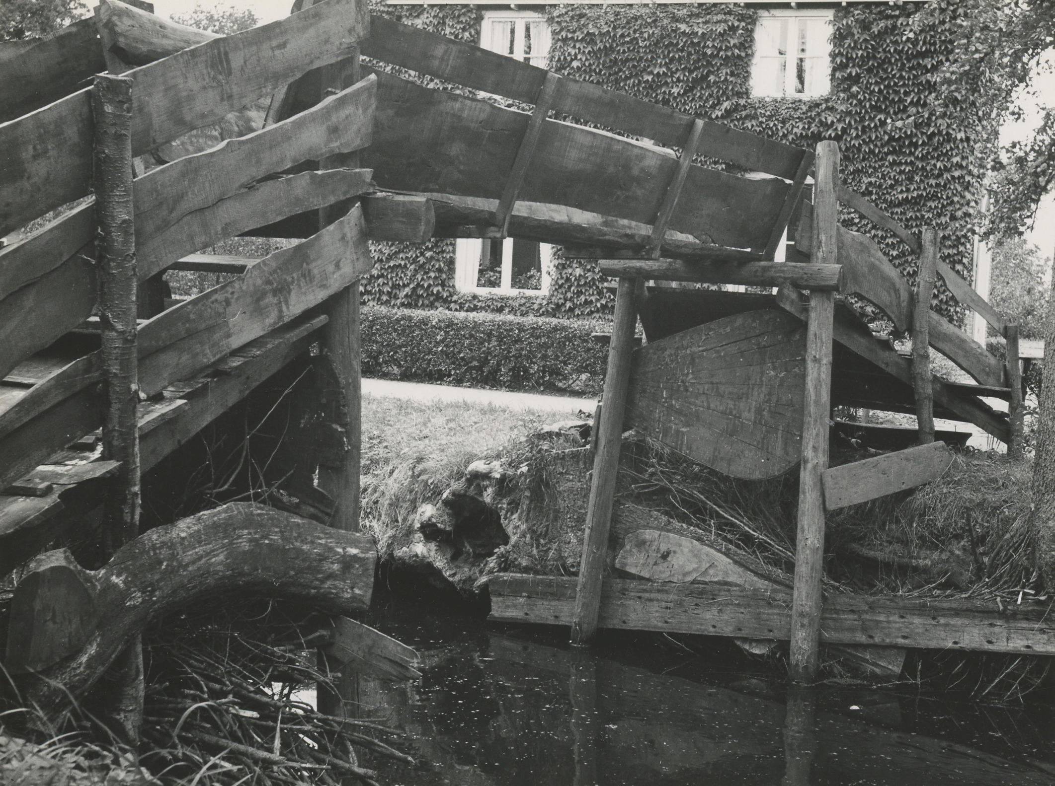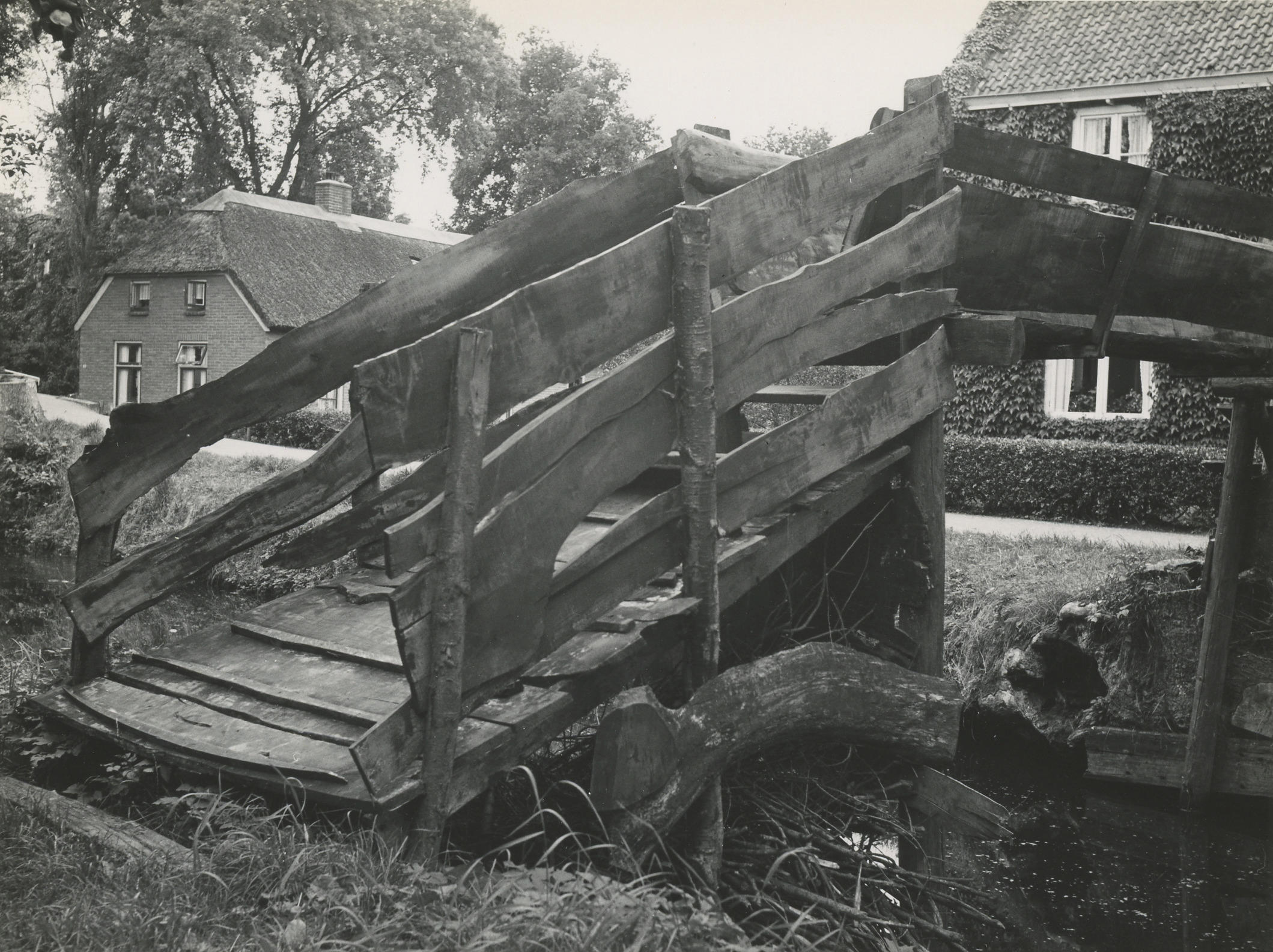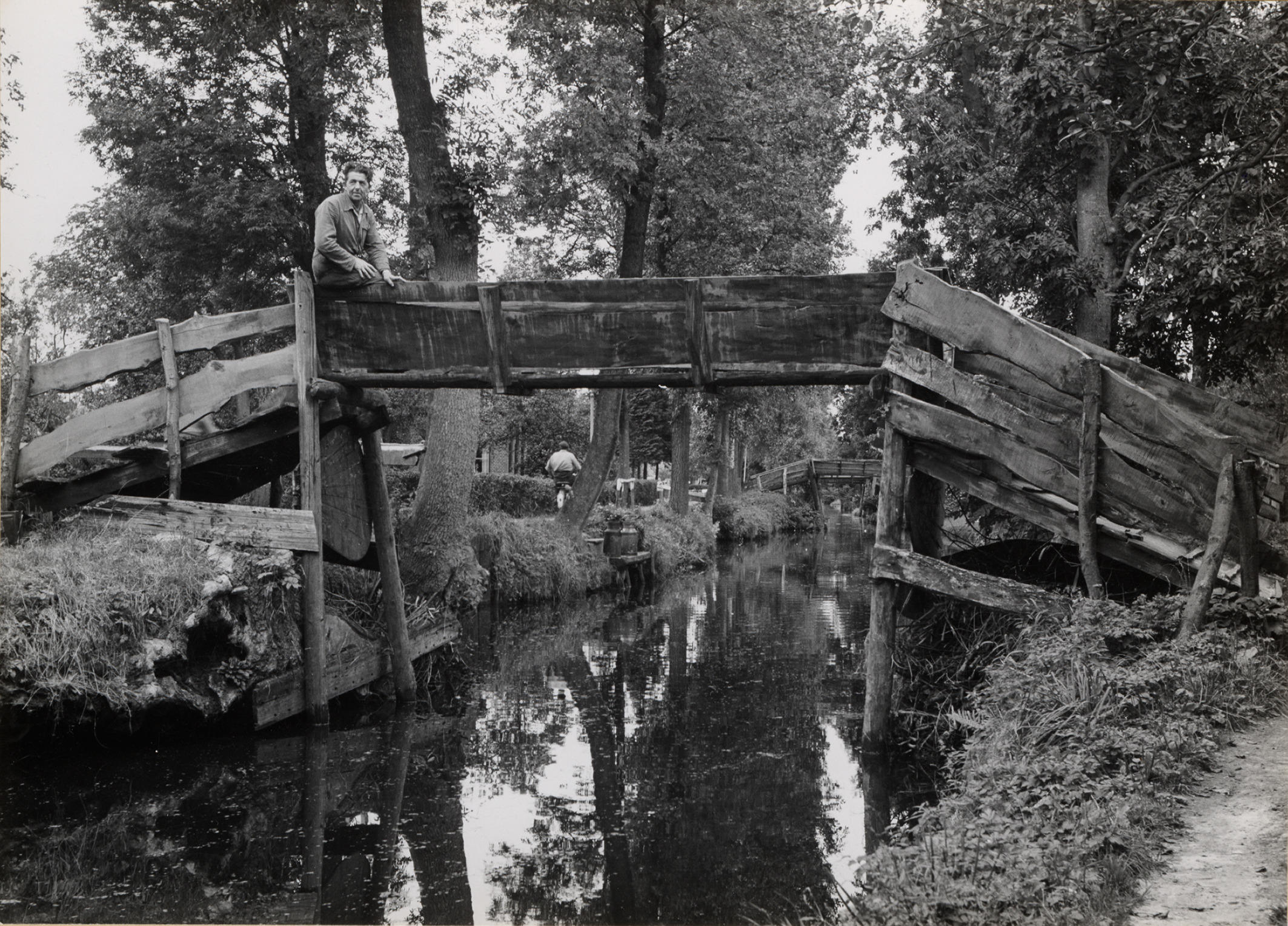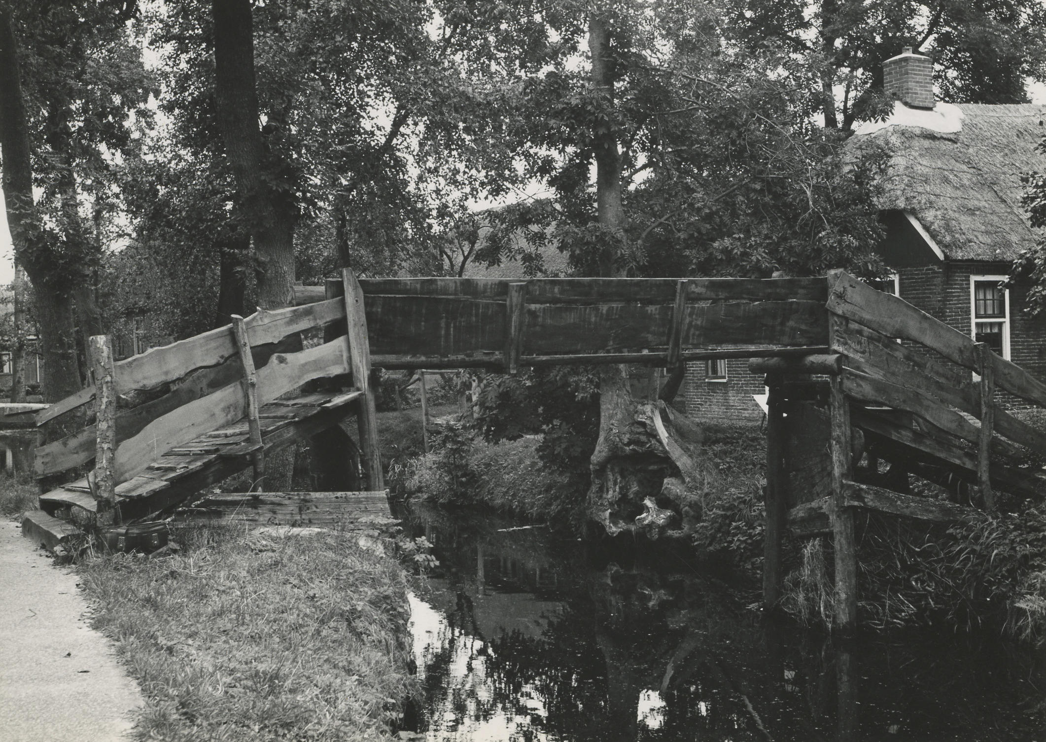 Houten brug, Giethoorn, 1958 (zwart-wit foto)