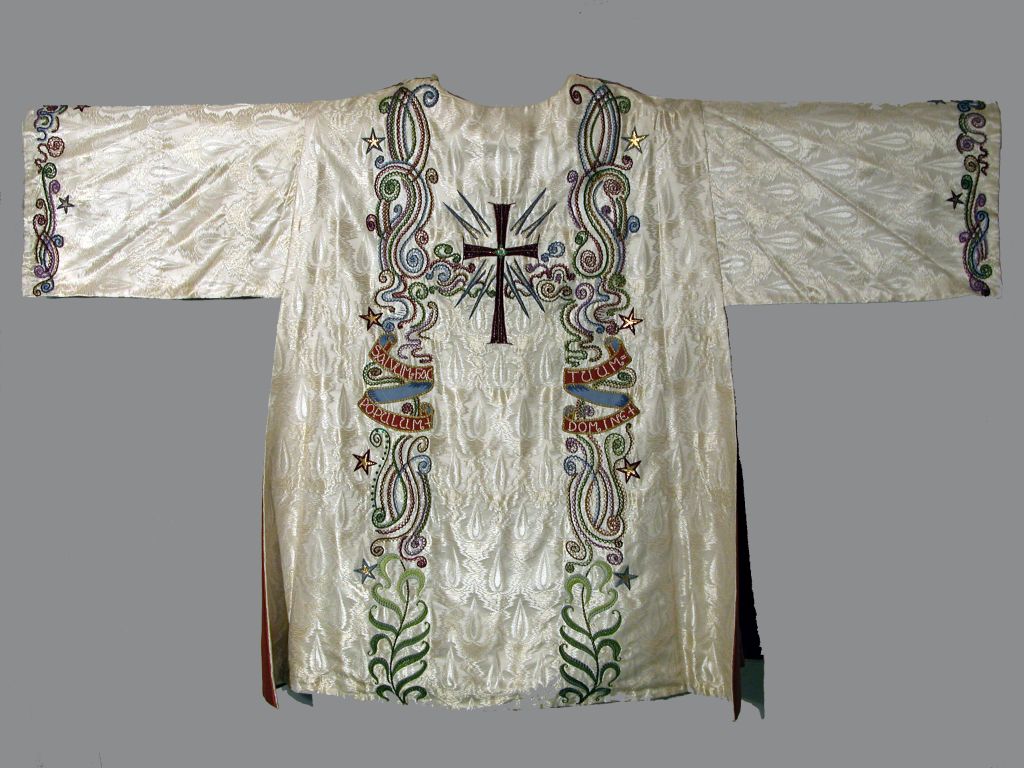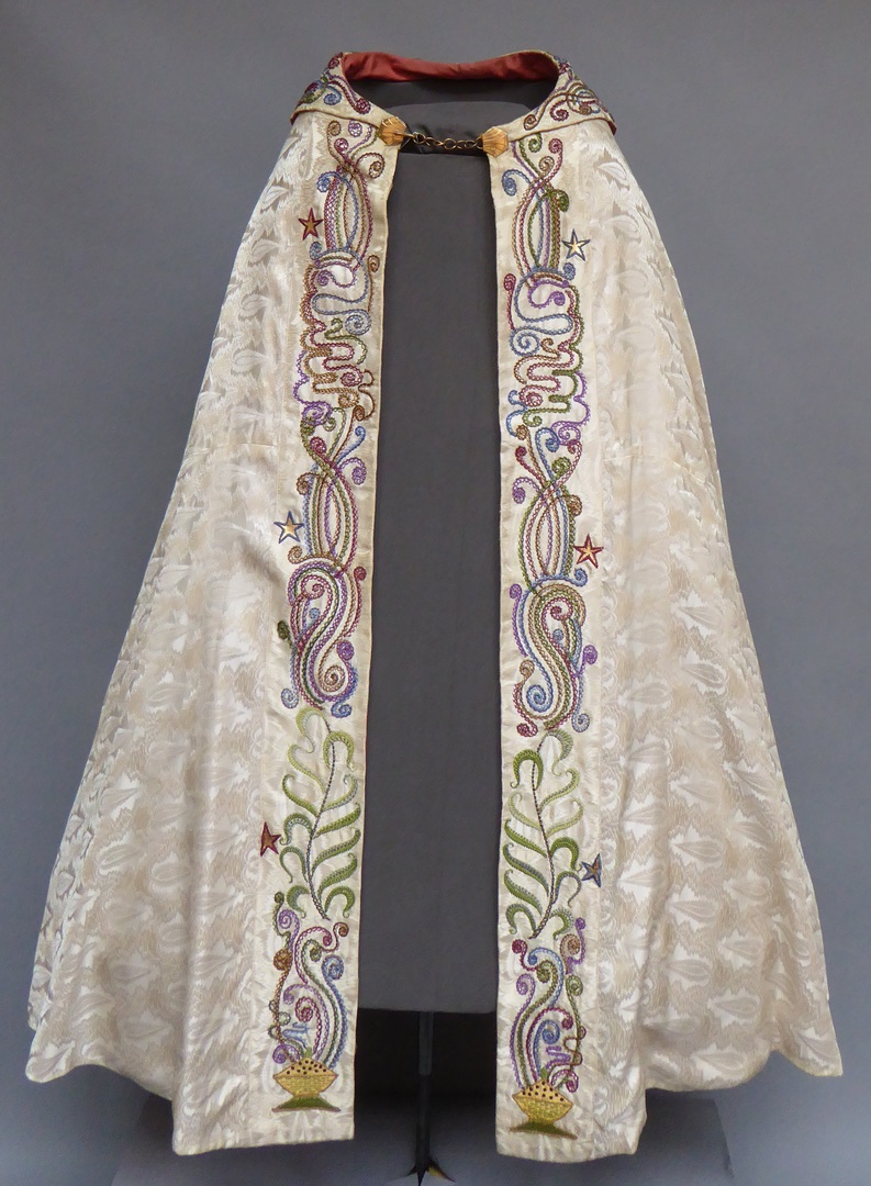 Witte koorkap met afbeelding schepping op schild